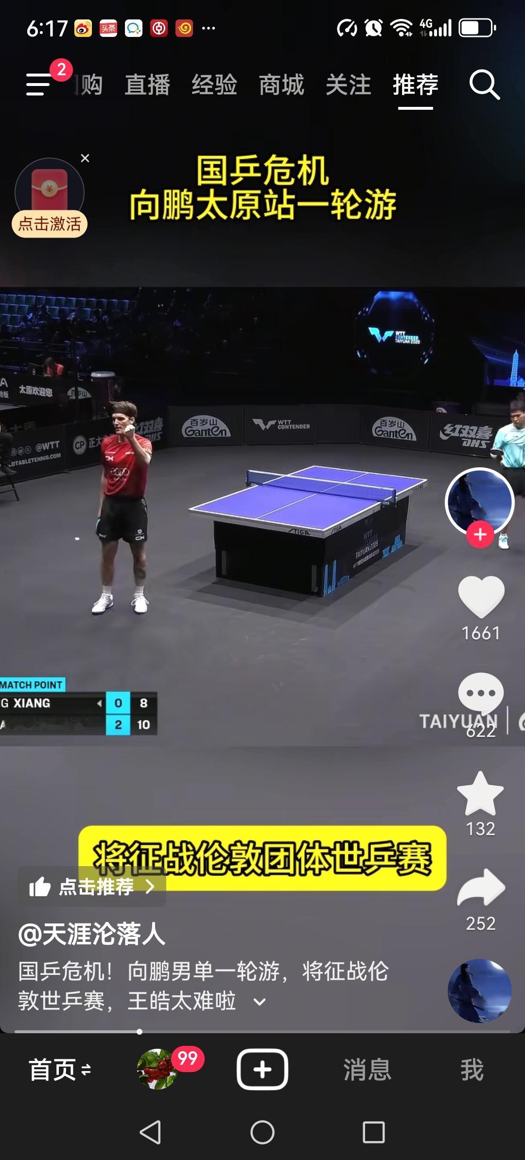 向鹏太原挑战赛0:3完败卢森堡选手,爆出一大冷门。让人更加揪心的是向鹏接着就参加伦敦世乒赛团体赛。更让人揪心的是参加世乒赛的还有梁靖崑。梁靖崑的状态也实在是堪忧。在刚刚结束的澳门世界杯上小组就没有出线,参加中国世乒赛的5个人能打的就只有王楚钦和林诗栋了。