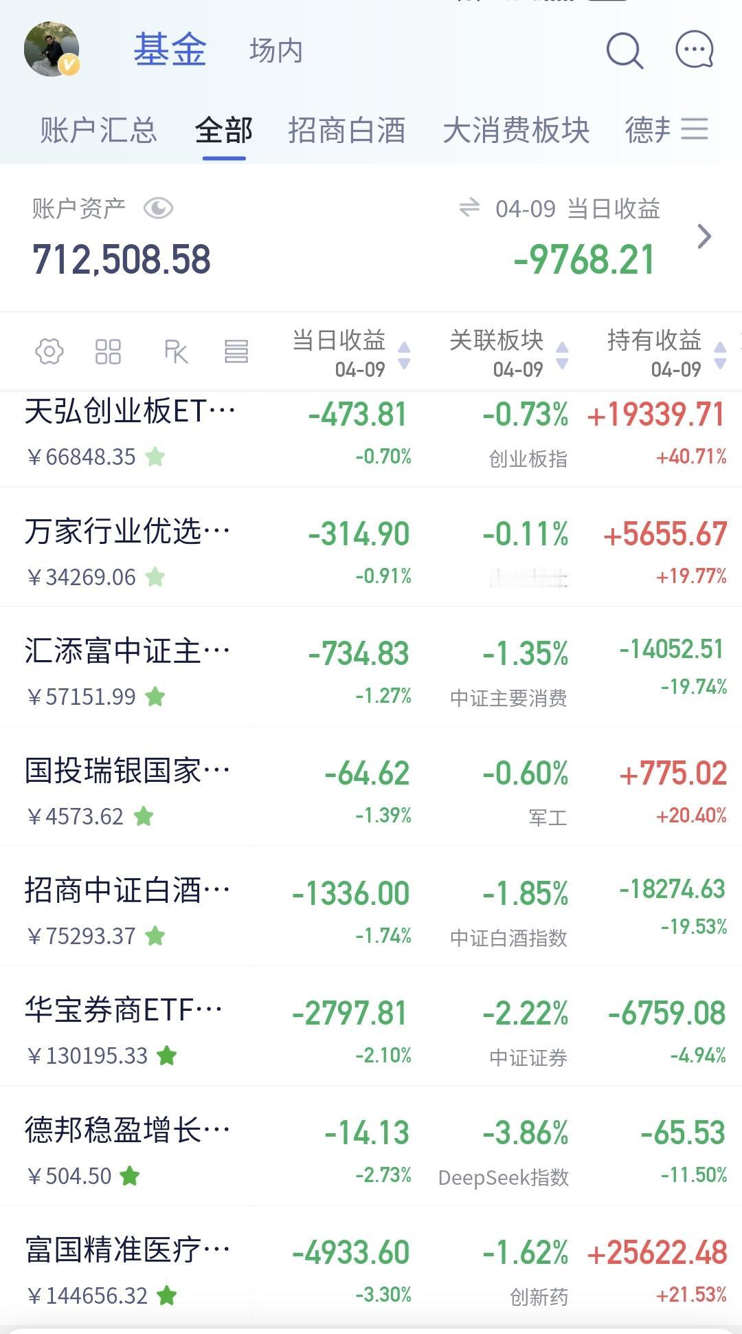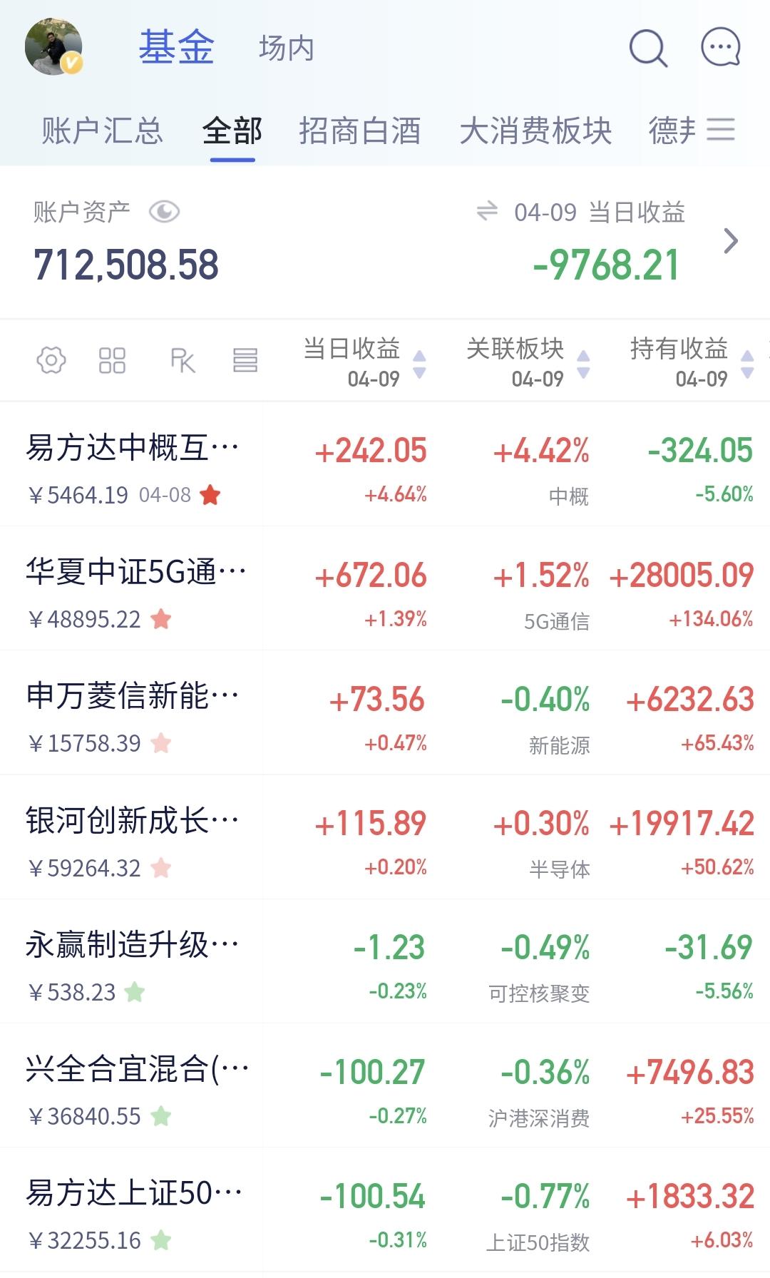 昨天基金亏损7883元,基金持有718811元,现金持有1249994元,现金收益35元,资产总额1968806元,波动的幅度并不大。