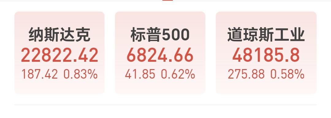 美股市场昨天晚上上涨,纳斯达克指数上涨了0.83%,标普指数上涨了0.62%,道琼斯指数上涨了0.58%,上涨幅度也都不大。