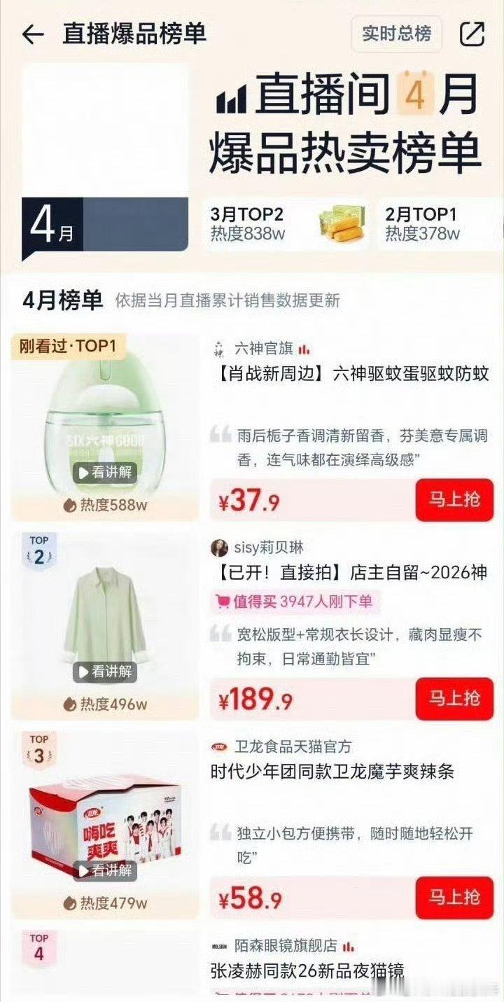 肖战六神共赴六年之约 国民大品牌和国民男神的强强联合!肖战六神合作六年再续约,再次卖爆~仅驱蚊蛋一个单品,在新物料出来后直接霸榜12小时,不到24小时就卖了2万多单👏4月直播热卖单品第一名🏆直播间4🈷️爆品热卖榜六神飙升第一!肖战六神共赴六年之约