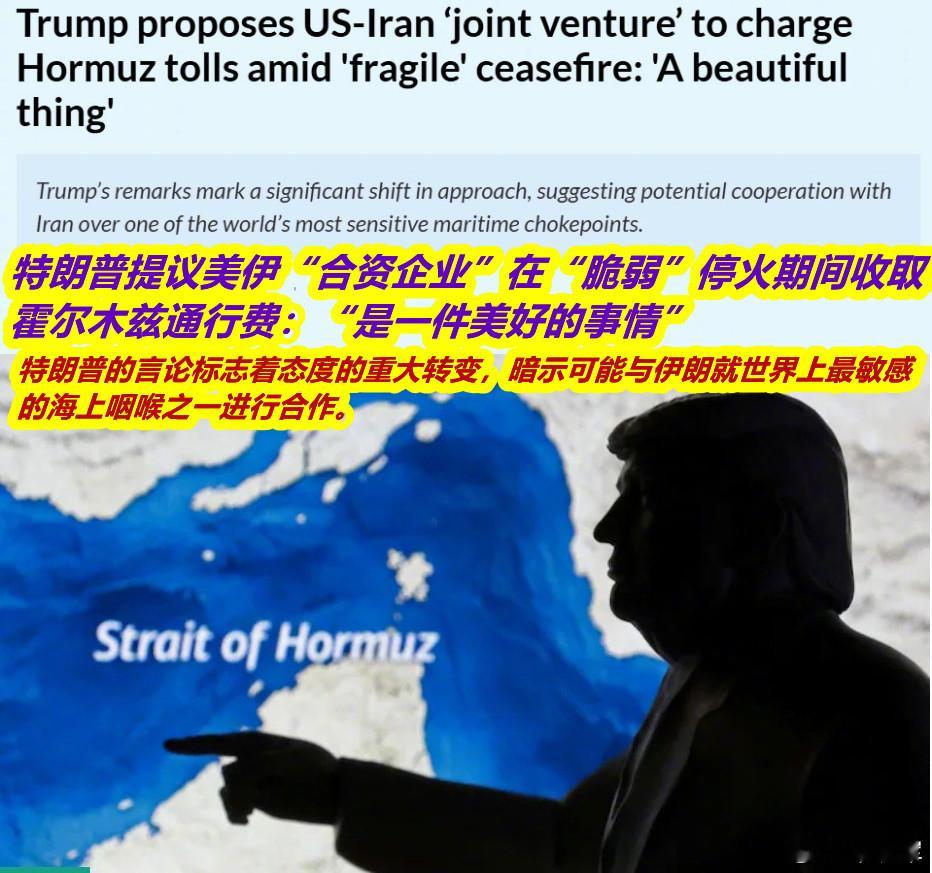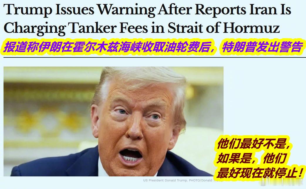 特朗普称伊朗最好别收霍尔木兹通行费图1:特朗普威胁伊朗不要收取霍尔木兹海峡“过路费”;图2:三天前他接受采访说还有暗示入股伊朗就海峡收费的“特许经营”的意思呢;图3:莫非是他猛醒地认识到了传说中的伊朗“五级收费制度”中大部分采用人民币结算受到刺激了?你觉得这次为此会发“最后通牒”吗?