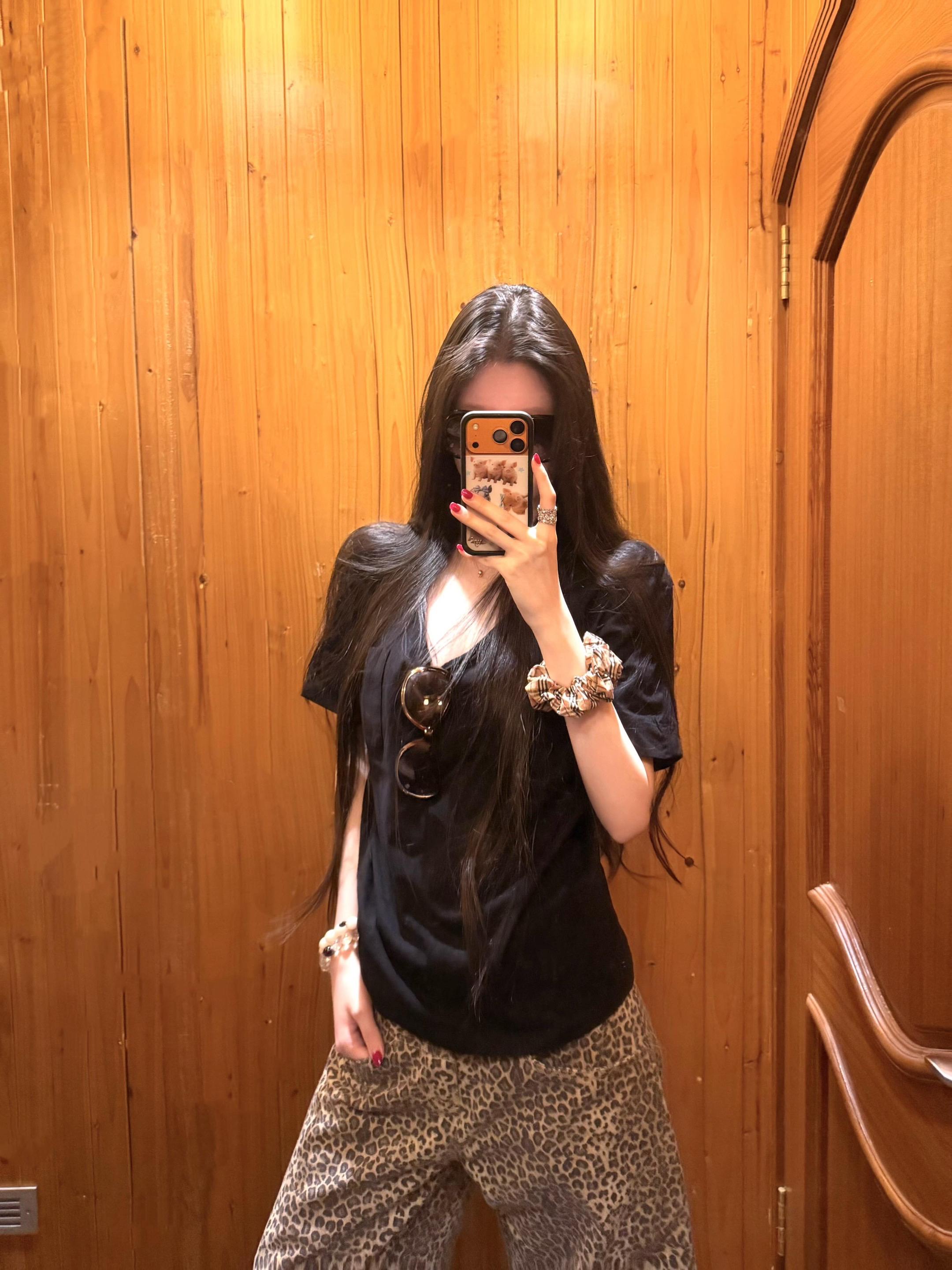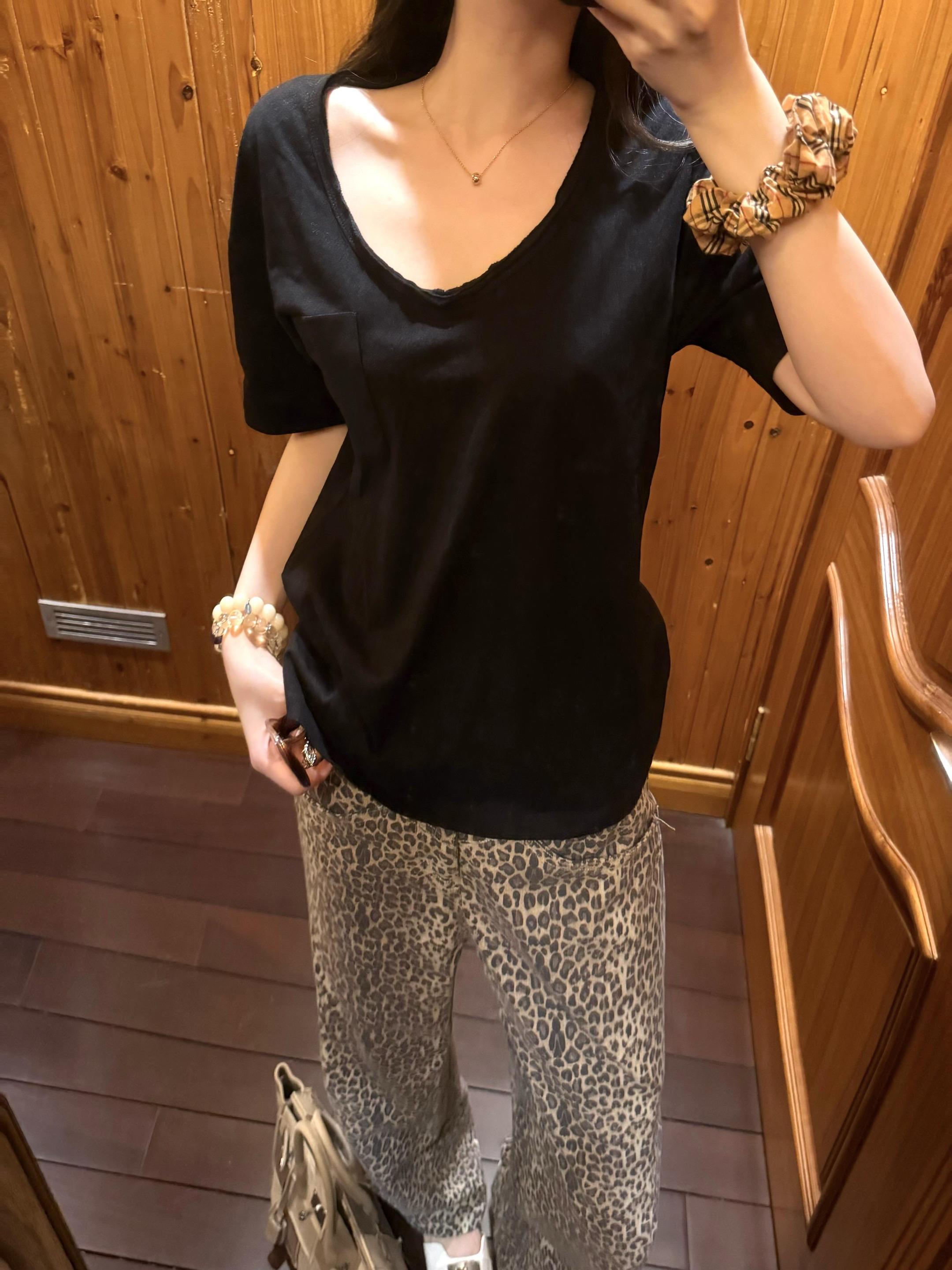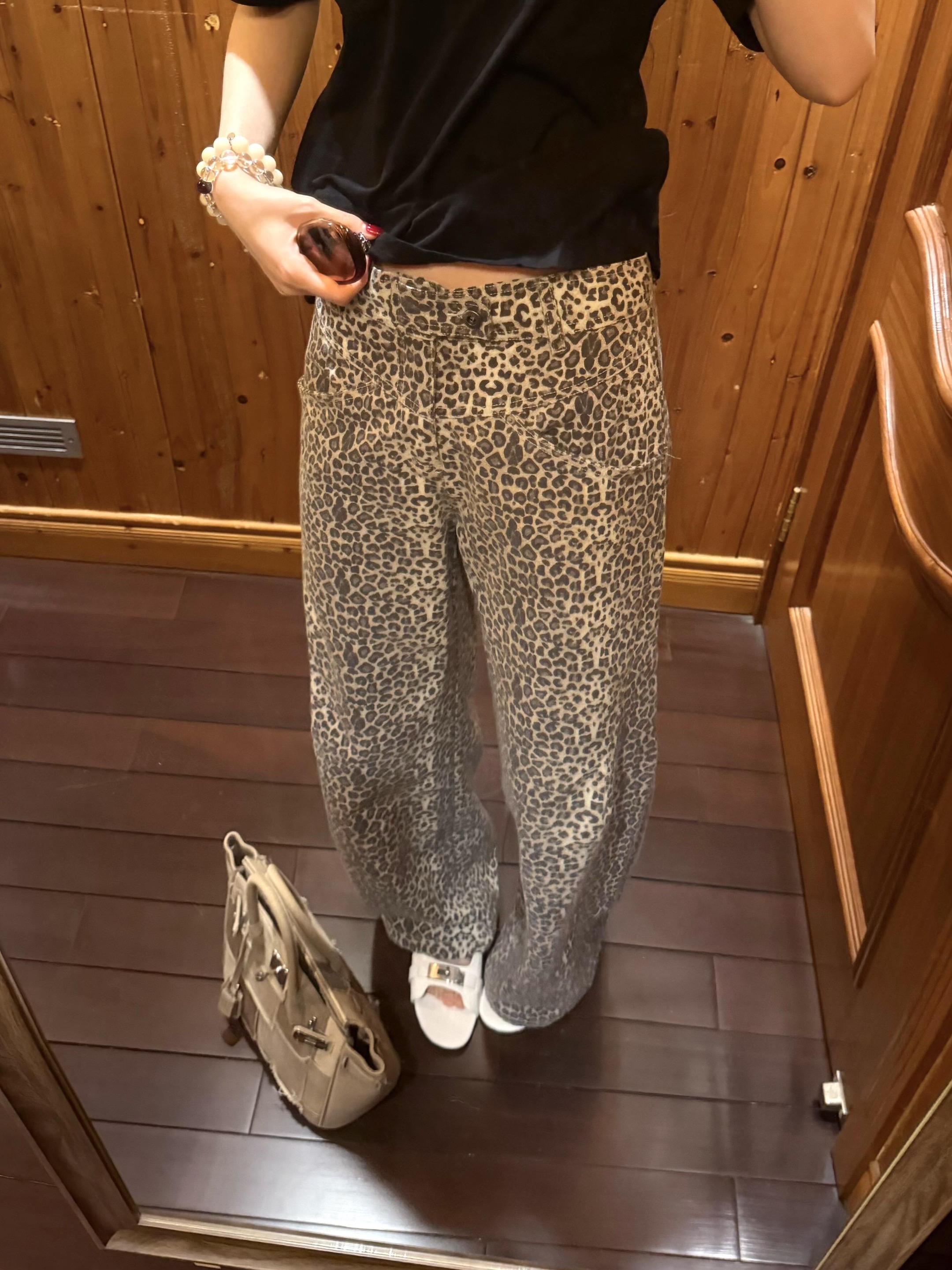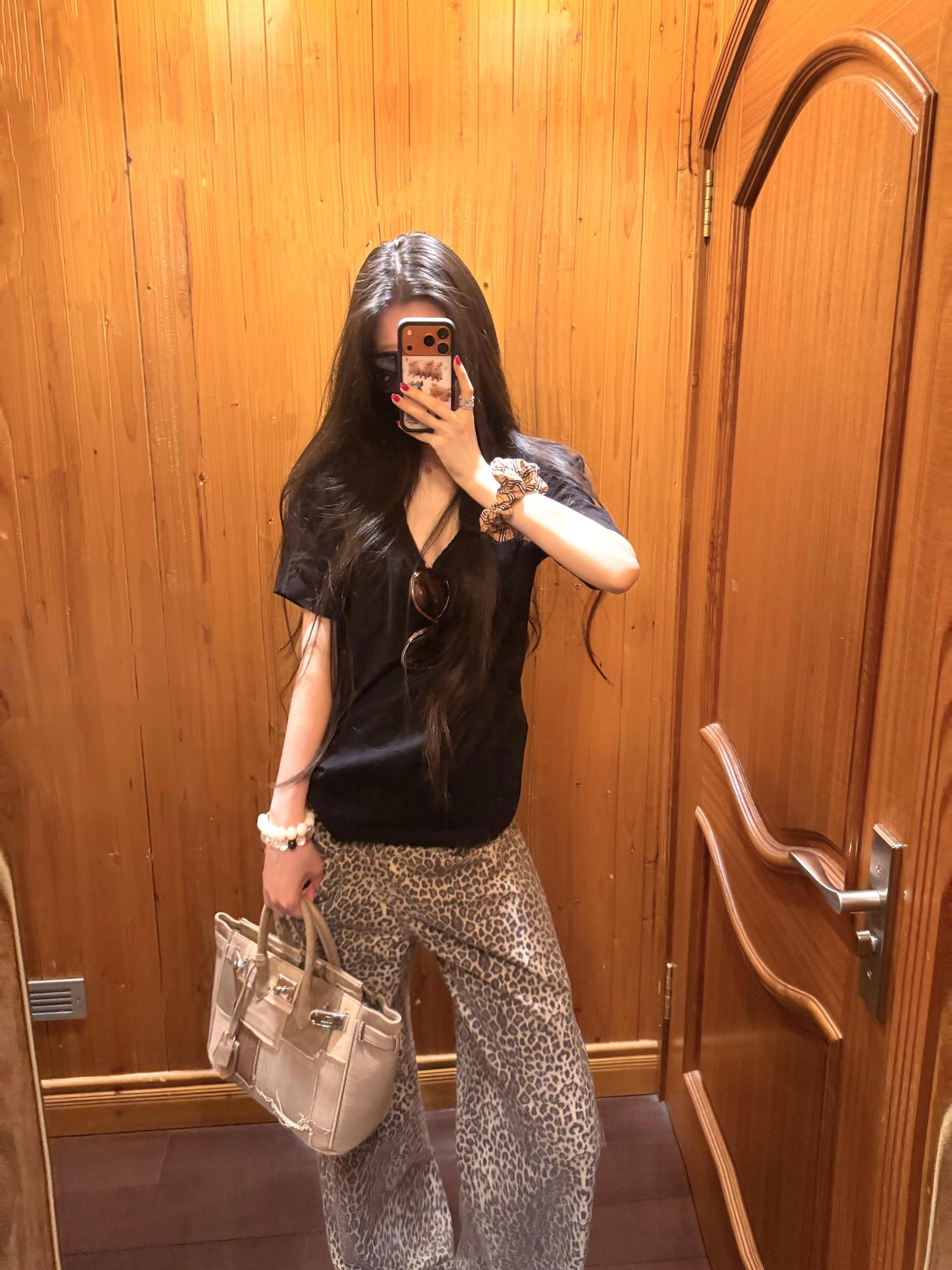 今日份黑色上衣搭配豹纹裤~