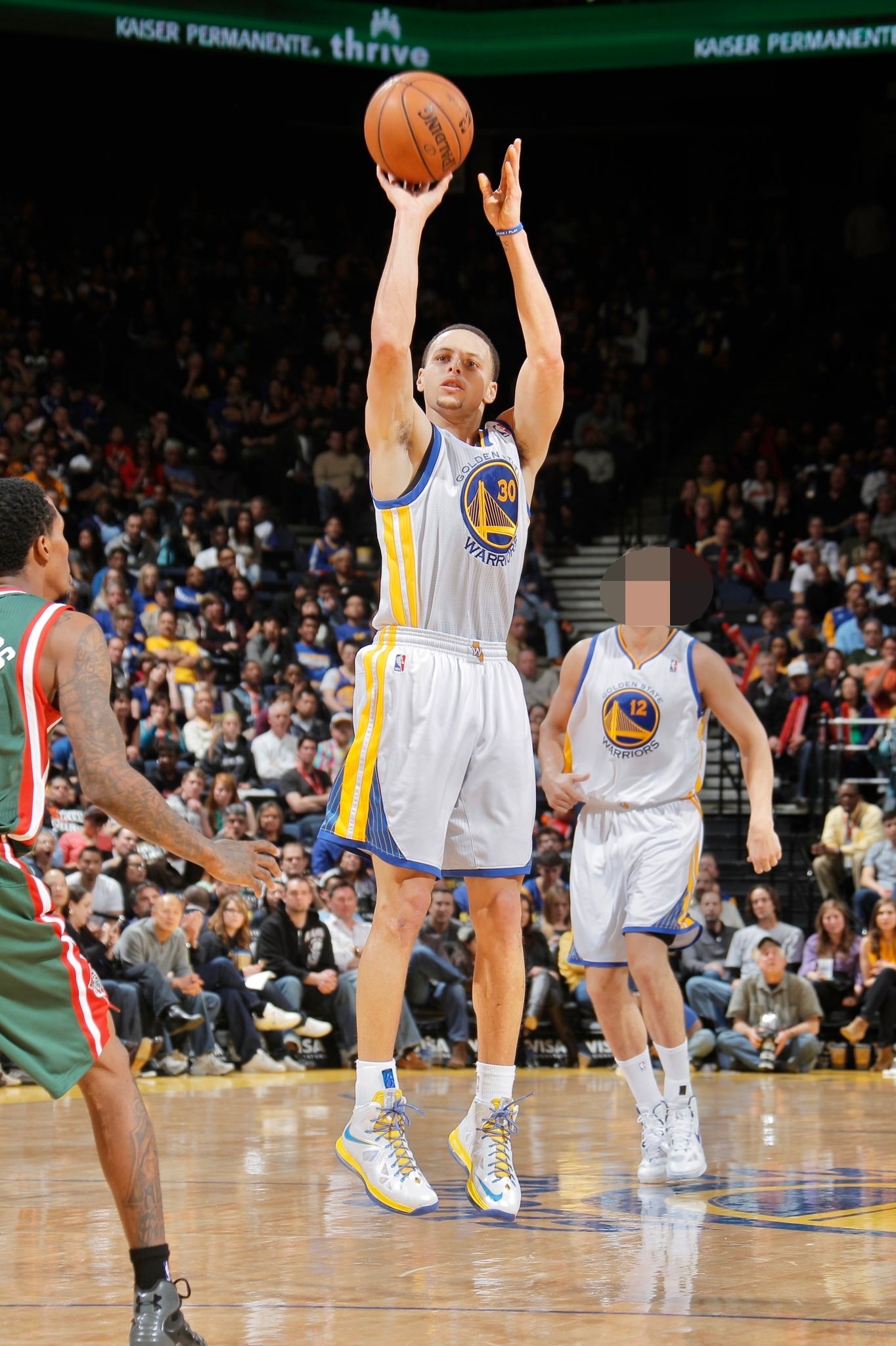 斯蒂芬·库里今天穿着一双2013年定制的元年Nike LeBron 10 ID配