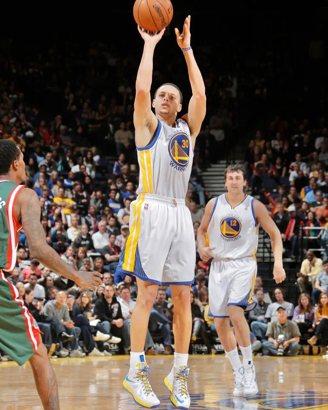 库里今天上脚詹姆斯十代战靴!这双鞋当年也是我的心头爱,全掌气垫又软又弹!湖人vs