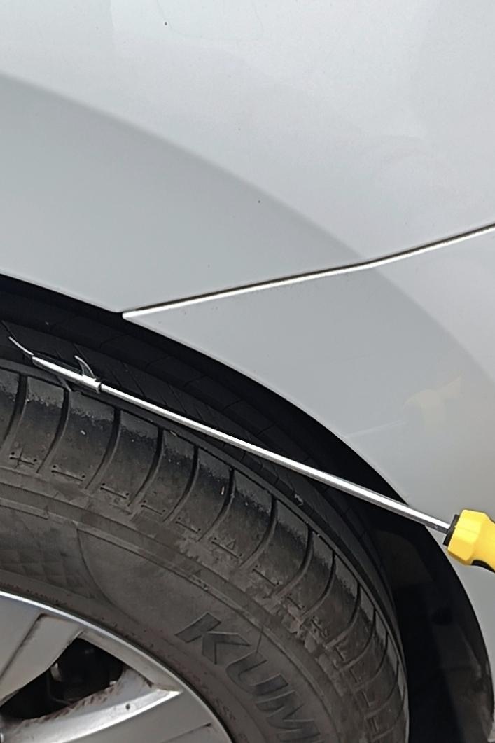 如果经常在郊区行驶,难免轮胎的纹理中有小石子或其他异物。一个两个问题不大,如果多了会存在抓地力下降、噪音增加等现象,有一些尖的异物还有可能伤害轮胎。这时候,我们就有必要定期清理一下轮胎上的异物了,我们可以选一个这样钩子,很结实,操作挺简单的,非常好用。在去石子的过程中,也非常解压,挺有成就感的。关键是清理了轮胎上的异物,美观还安全了。【来自懂车帝车友圈】
