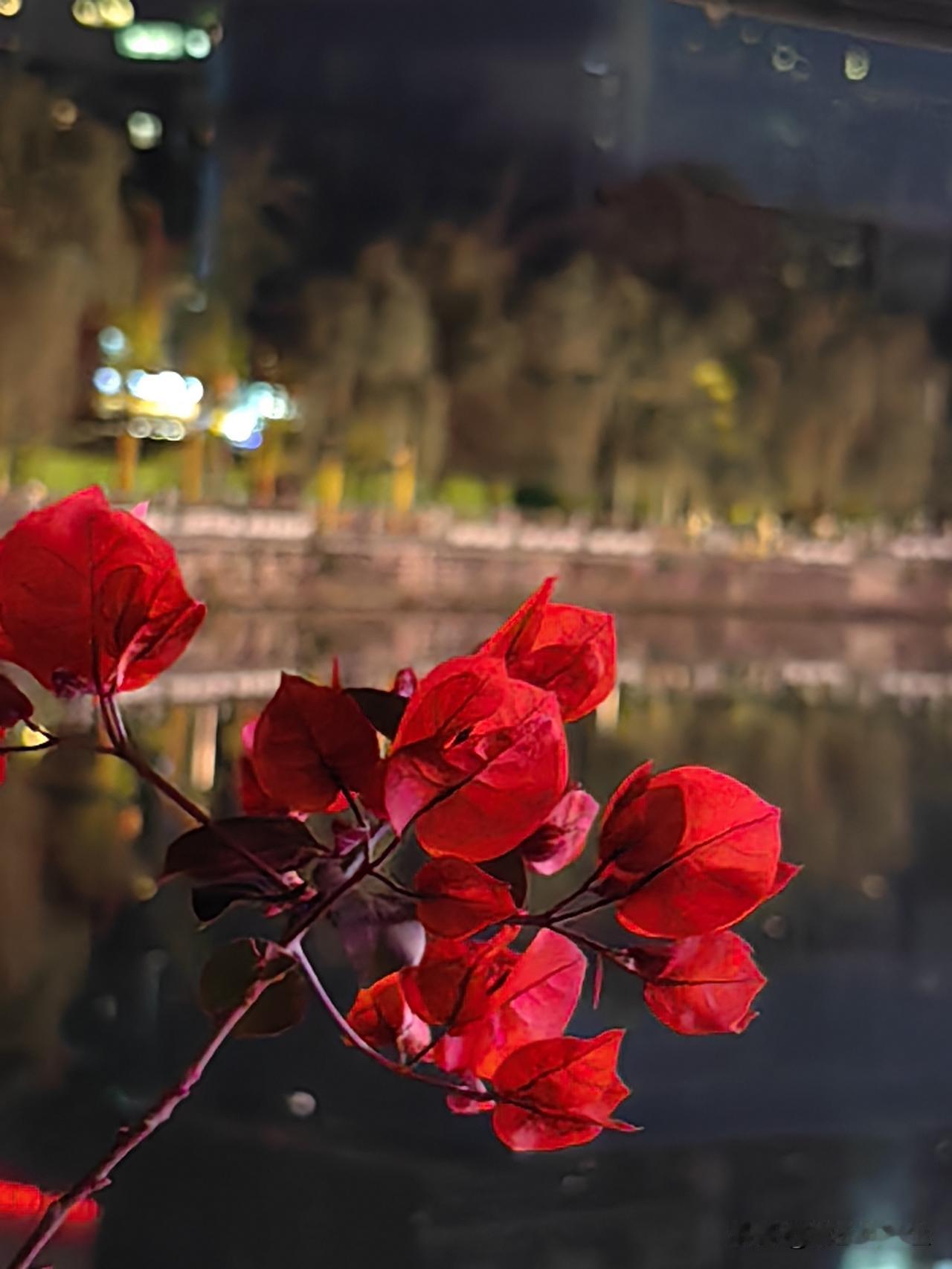 夜色漫过城市,三角梅在晚风里河畔边开得滚烫。 一簇红,撞碎了满城灯火;几枝影,映透了半生心事。 我们总在等一场远行,等一次轻松,其实最好最舒适治愈的风景,每天都在身边,都在这抹热烈的红红的花朵里,慢慢释放热烈、自由,绽放。三角梅花会