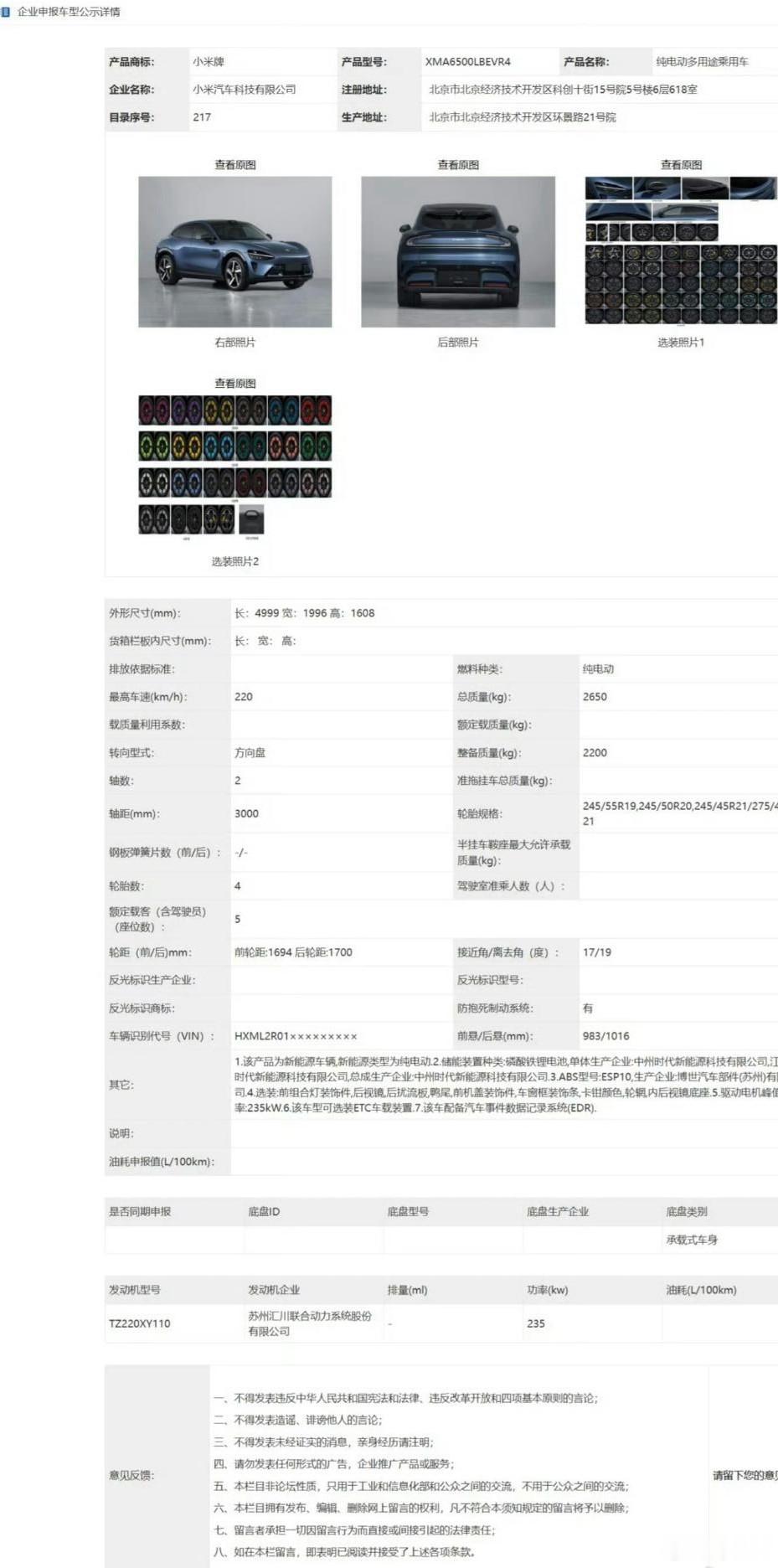 这个有点没想到,小米YU7还会有一个更入门、更便宜的版本?有一个细节是,整备质量从标准版的 2315kg降到了2200kg,少了115kg,难道是在电池包上面有取舍?那我就可以猜测,入门版的续航会缩水一些,但是其他配置大差不差,价格会更有优势,可能会再便宜1-2万元的样子,直接对标特斯拉Model Y的起步版本了。看起来,小米最近引入了很多前特斯拉高管,真的是有很明确的目的啊!小米YU7入门级版本小米YU7新增申报入门级版本 小米汽车 小米YU7