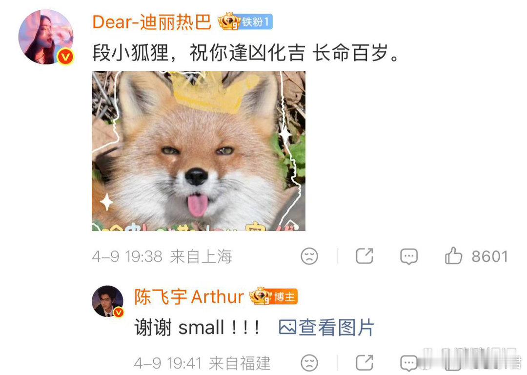 热巴在评论区给陈飞宇庆生,“段小狐狸,祝你逢凶化吉,长命百岁” 哎哎哎~眼尖的已