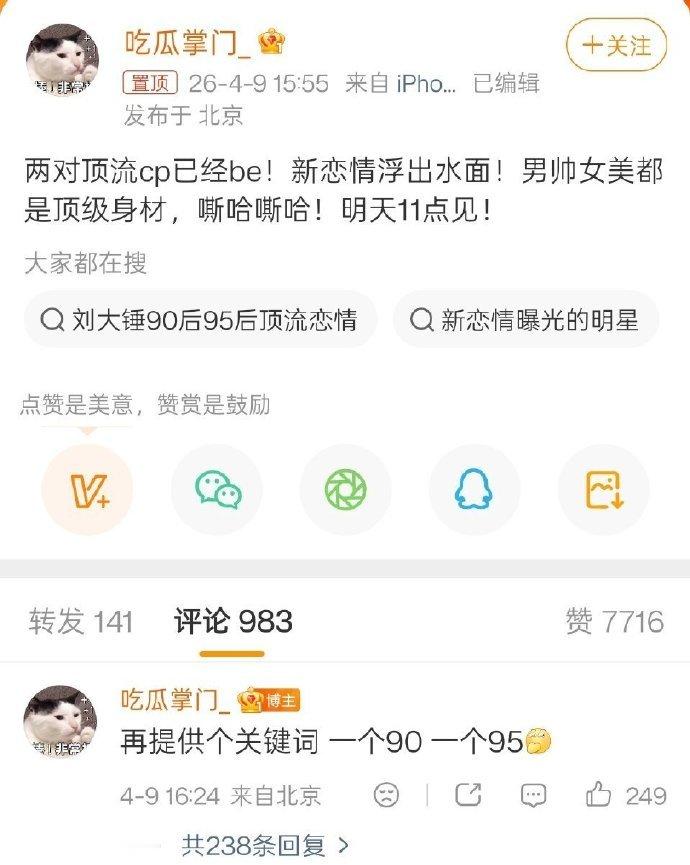 刘大锤重磅预告!内娱两对顶流 CP 已正式 BE!一对 90 后国民顶配、一对
