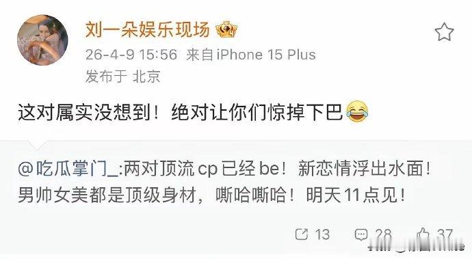 刘大锤重磅预告!内娱两对顶流 CP 已正式 BE!一对 90 后国民顶配、一对 95 后顶流荧幕情侣,强调非十八线艺人,全是热搜常客、千万粉级艺人,如今不仅秘密分手,还各自开启新恋情。不会是白敬亭和宋轶的瓜吧 曝两对顶流cp已经be