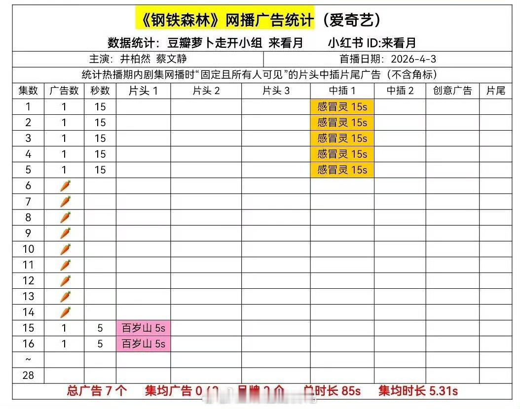 目前在播剧在冰湖重生、八千里路云和月、白日提灯、月鳞绮纪、叵测、钢铁森林、家事法庭广告统计
