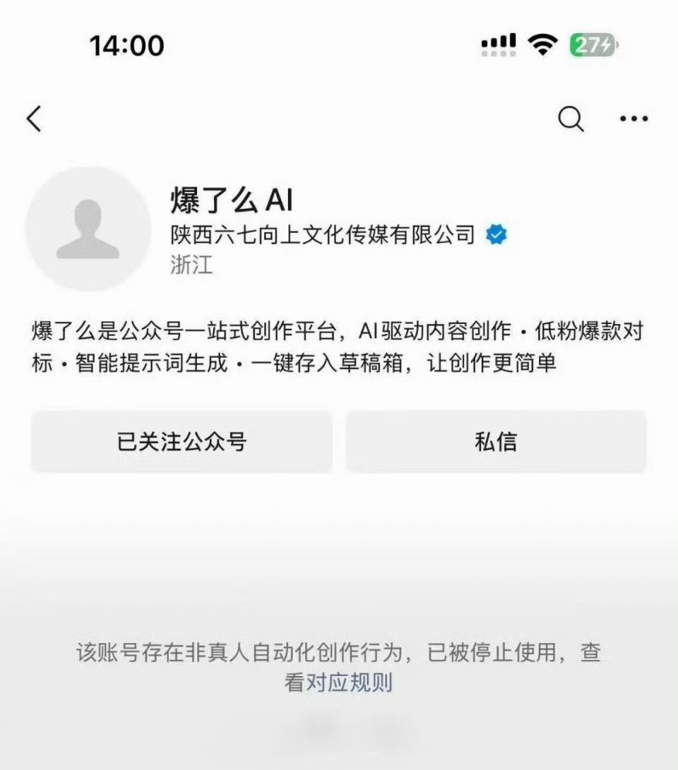 微信回应夫妻用AI写公众号年赚200万“夫妻AI写公众号年赚200万”当事人的公众号被封了!这么高调宣传自己还卖课割韭菜…