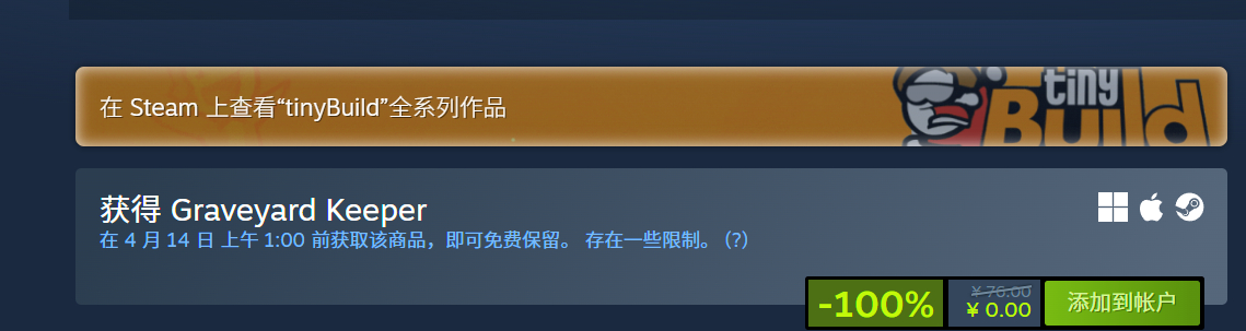 Steam、PS商店、Xbox喜+1免费领取游戏《守墓人》,Steam端在 4 月 14 日 上午 1:00 前获取该商品,即可免费保留。