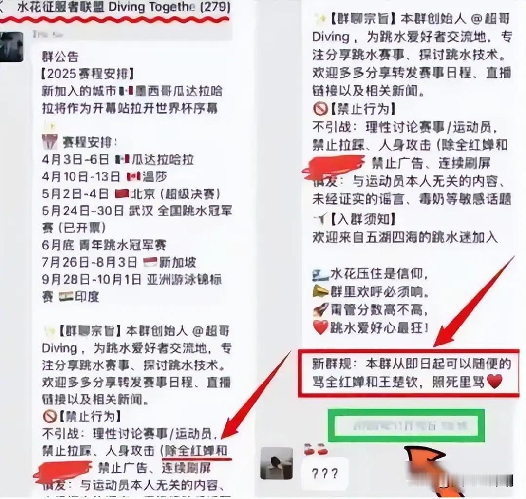定向网暴群:群规明确 “禁止攻击其他运动员,全红婵除外” 。