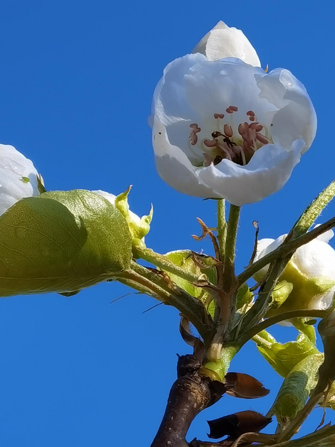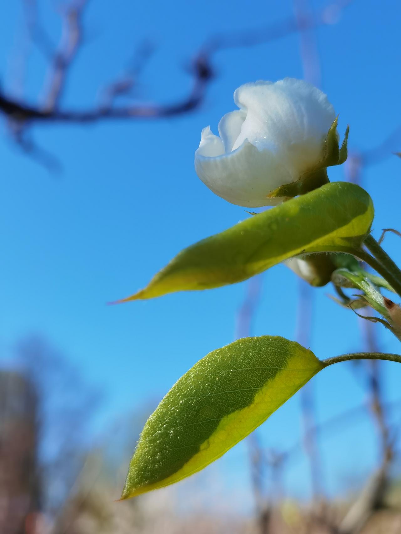 一场春雨过后,滋润着梨花慢慢绽放。承德迎宾路东站过街天桥正对着一颗梨树,树木不太起眼,但走近后拍照还是挺美的。