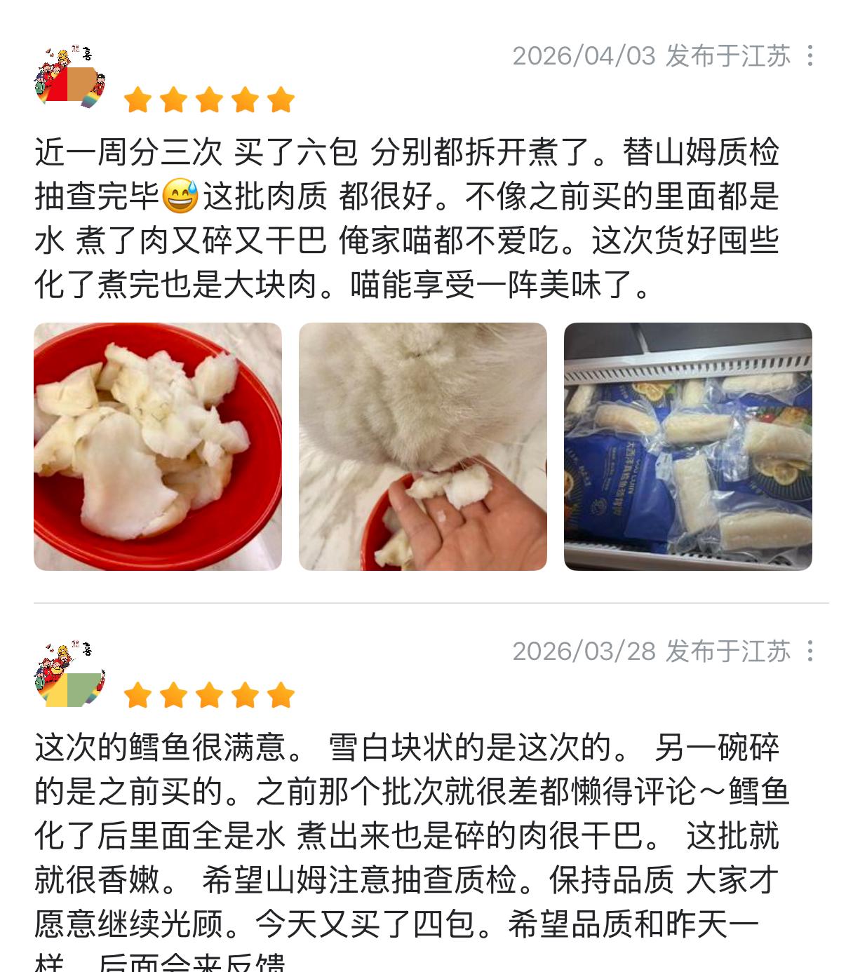 山姆那款大西洋真鳕鱼颈背肉,1公斤160块。比牛肉猪肉贵多了。大多数人都舍不得买这么贵的鱼,结果我看有人一买好几袋,拿来喂猫。对,专门给猫吃。猫粮都不行,得是这种深海真鳕。这猫比人吃的还贵,感觉自己活得不如猫,富人养猫是真不心疼钱。我一周菜钱,人家猫一顿饭。