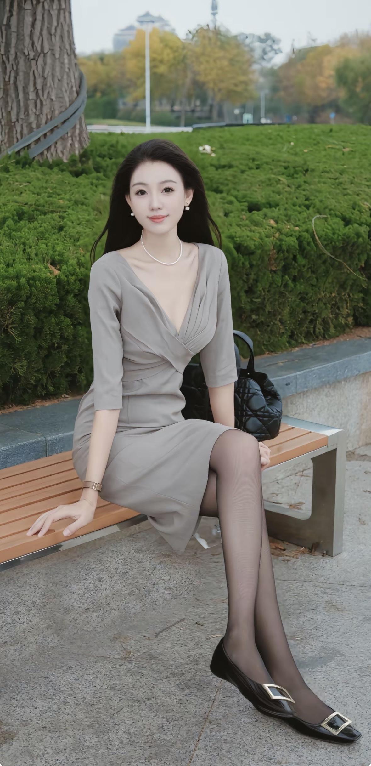 秋日公园的长椅简直是时尚秀场!30+姐姐在这拍照,优雅清冷感直接拉满。