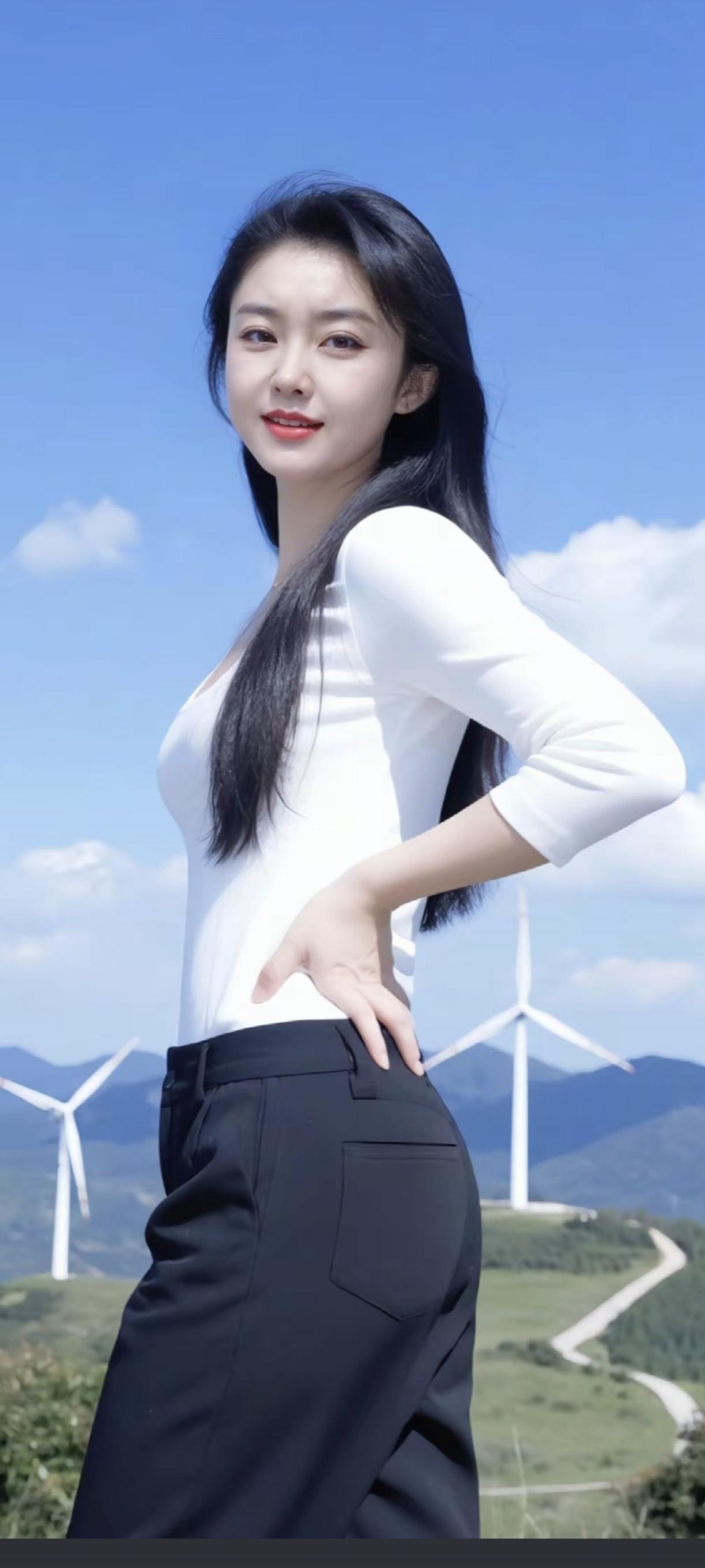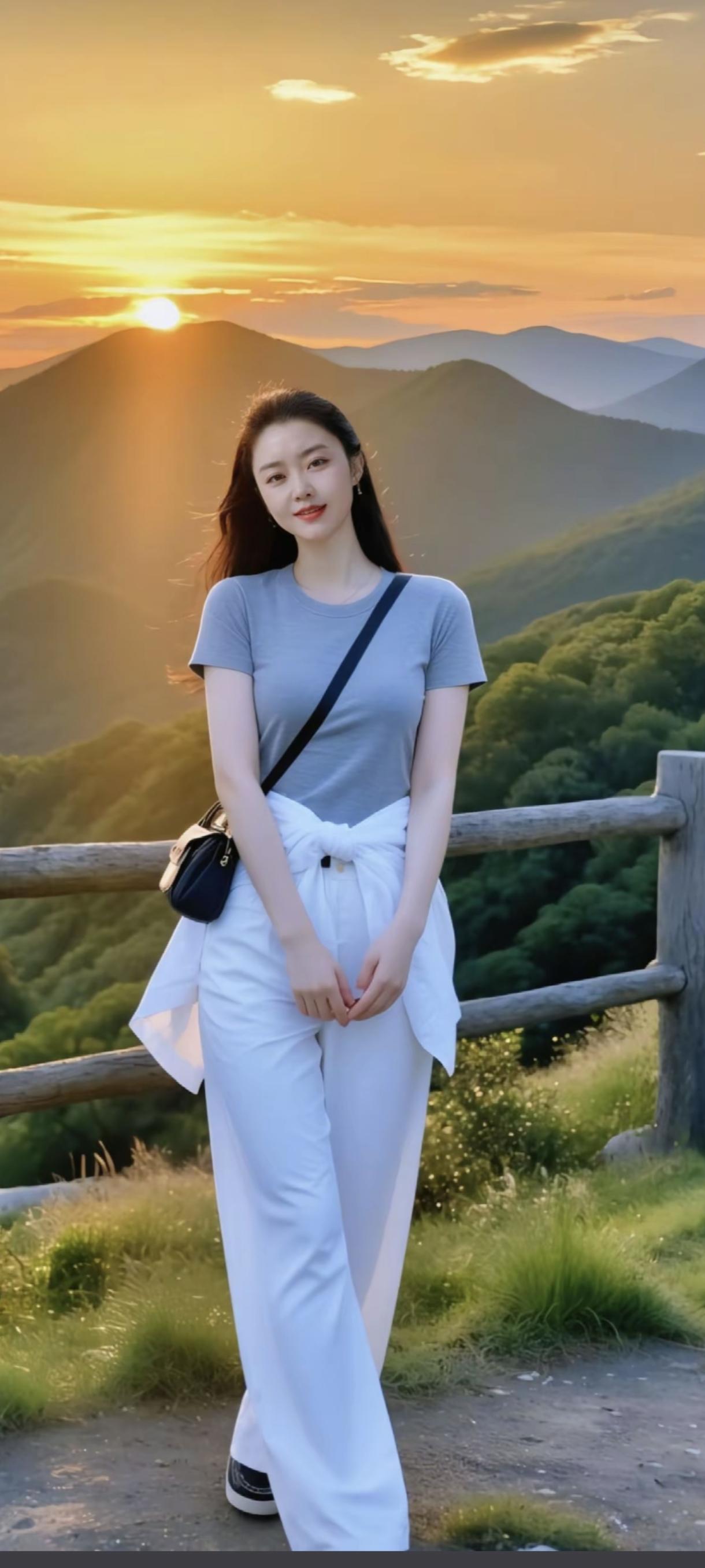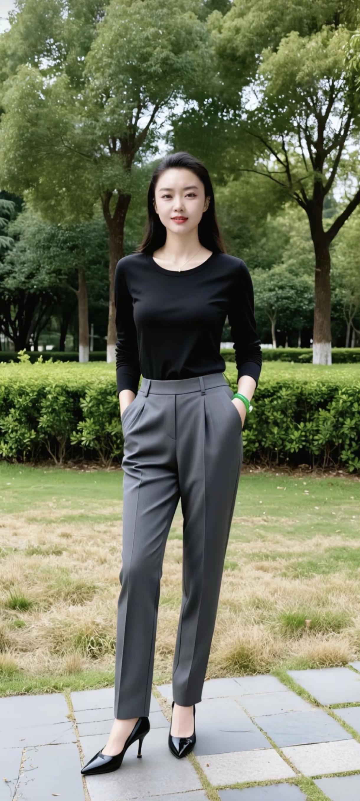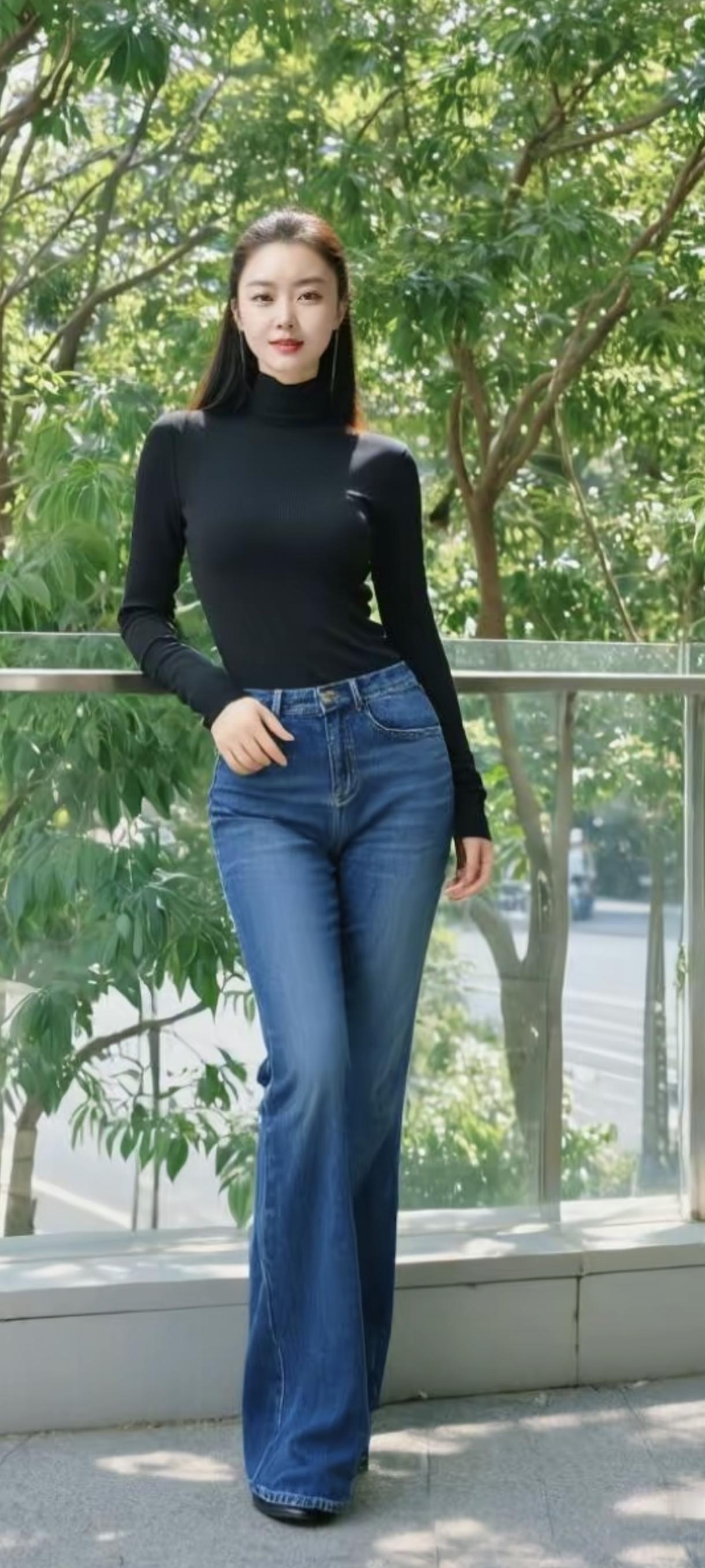 雨后的石板路泛着清润的光,她就站在那里,一身浅蓝色喇叭牛仔裤,把利落与温柔揉得刚