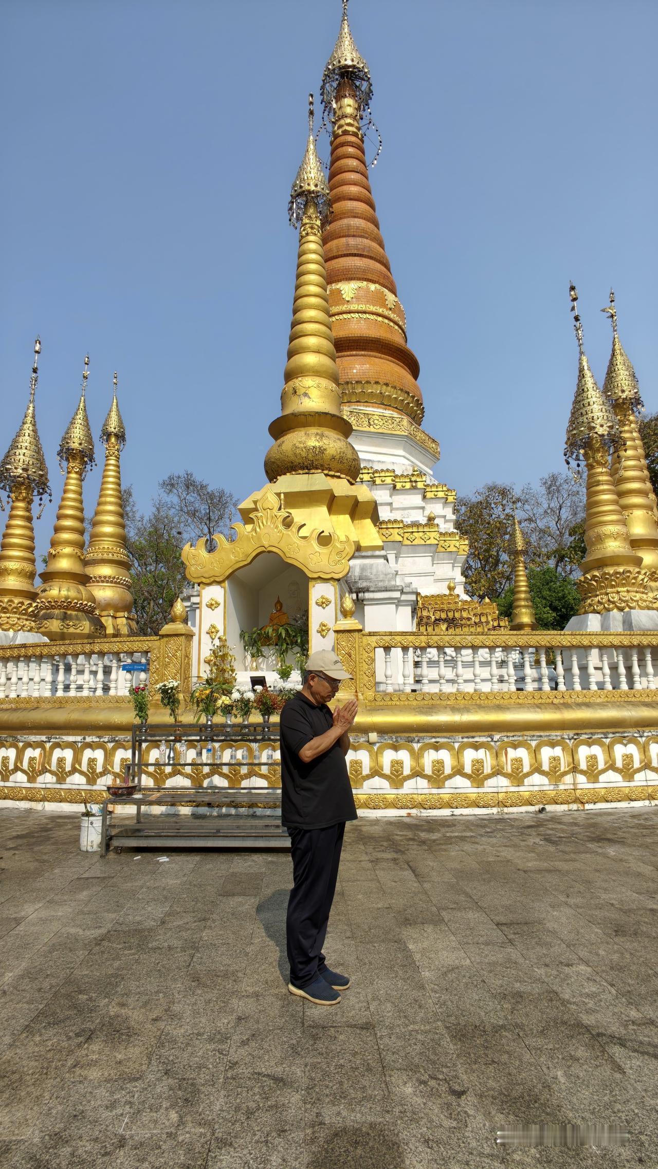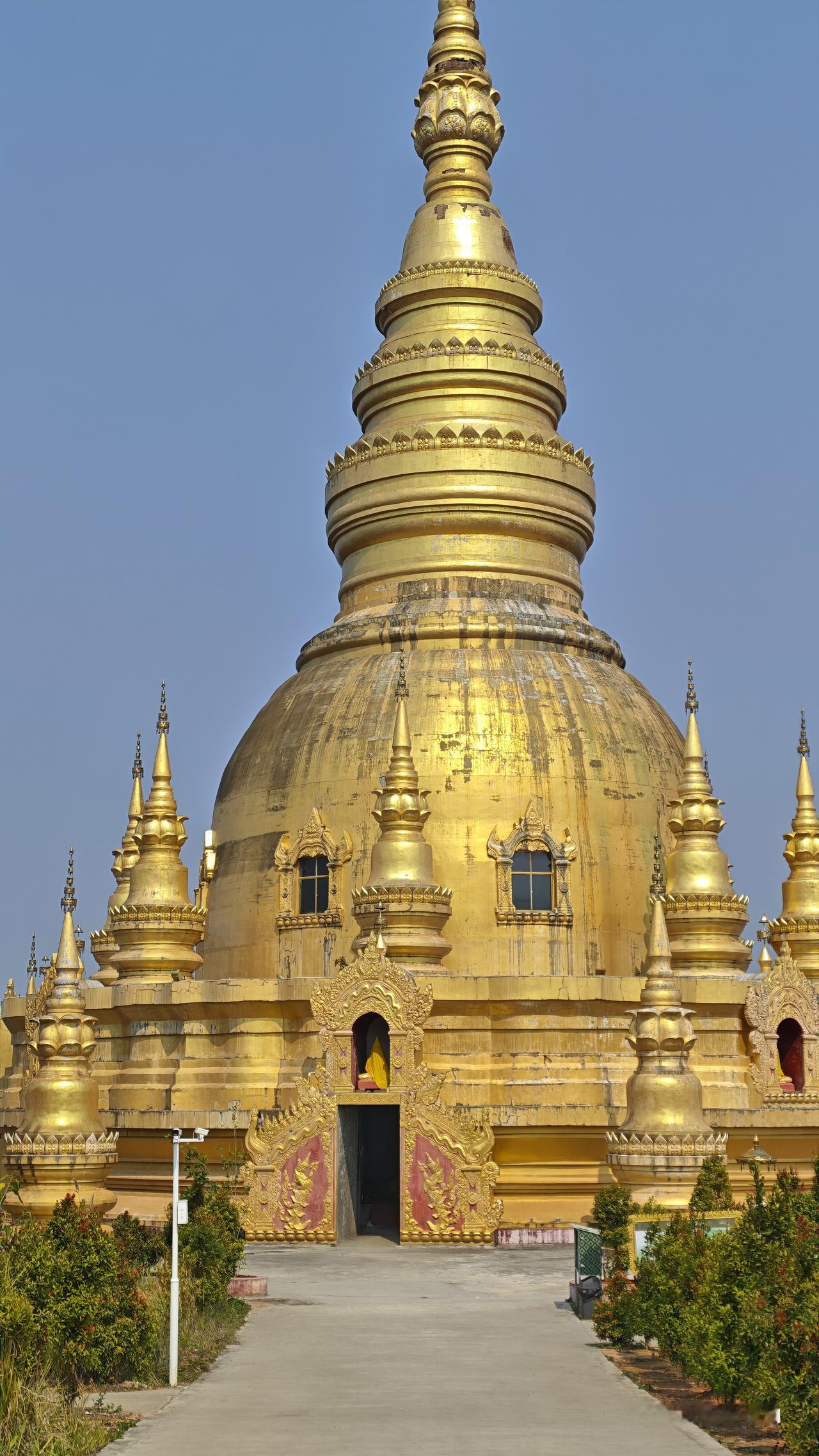 再到姐勒金塔。‌姐勒金塔傣语称“广母贺卯”,意为“瑞丽城首之塔”,始建于17世纪,是东南亚著名的佛塔之一,与缅甸仰光大金塔、印度尼西亚婆罗浮屠塔齐名。姐勒金塔由主塔和16座小塔组成,主塔高39.5米,塔身贴满金色瓷砖,四周环绕着16座小塔,分层次缩小,形成众星拱月的壮观景象。这个金塔也不错,挺有特点。不像有些网友说的那么差,而且人家也不要票。