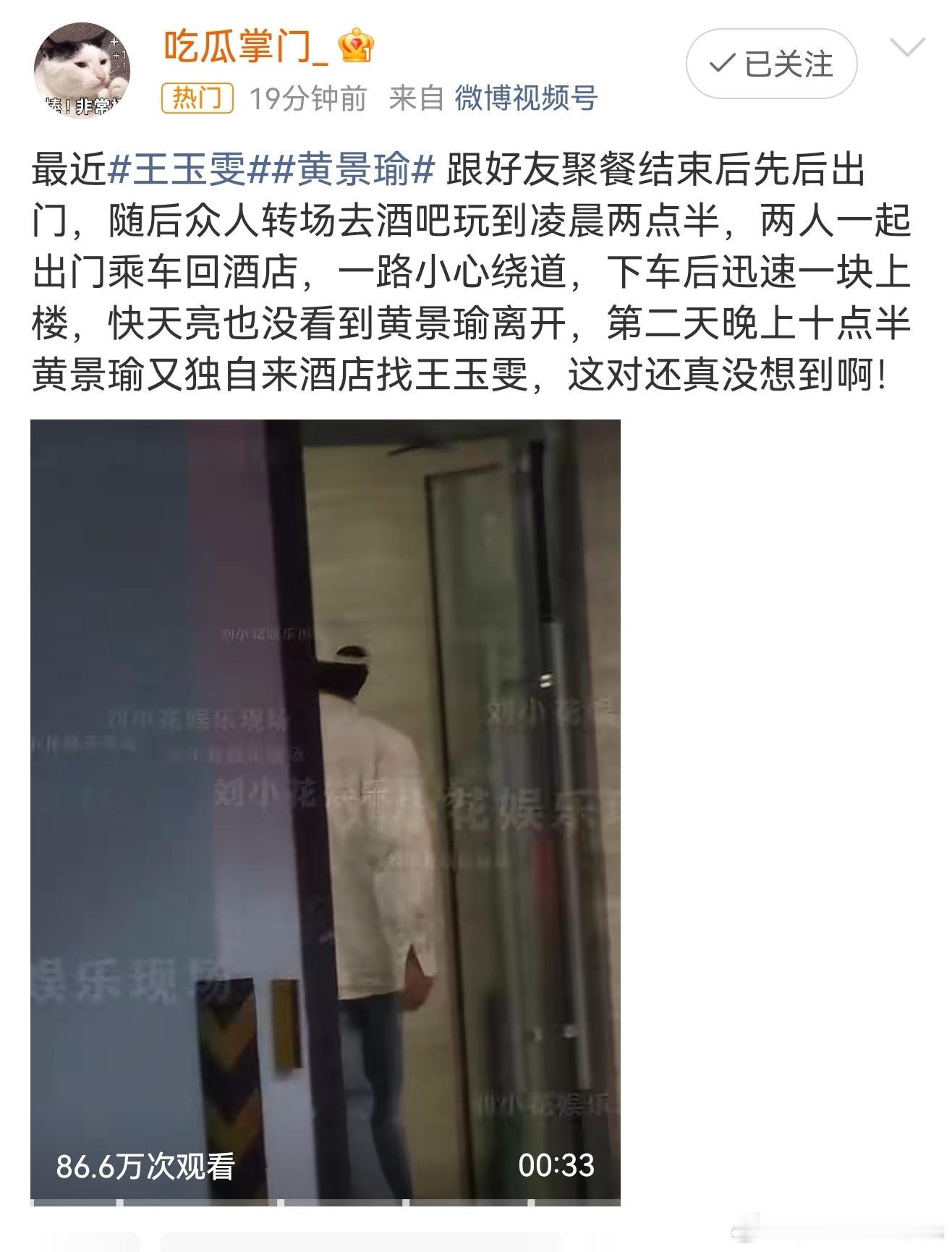王子奇痛失2个cp 狗仔拍到黄景瑜王玉雯一起回酒店引发恋情讨论,网友说王子奇顿时痛失2个cp。好消息是黄景瑜王玉雯都否认恋情了,cp还在