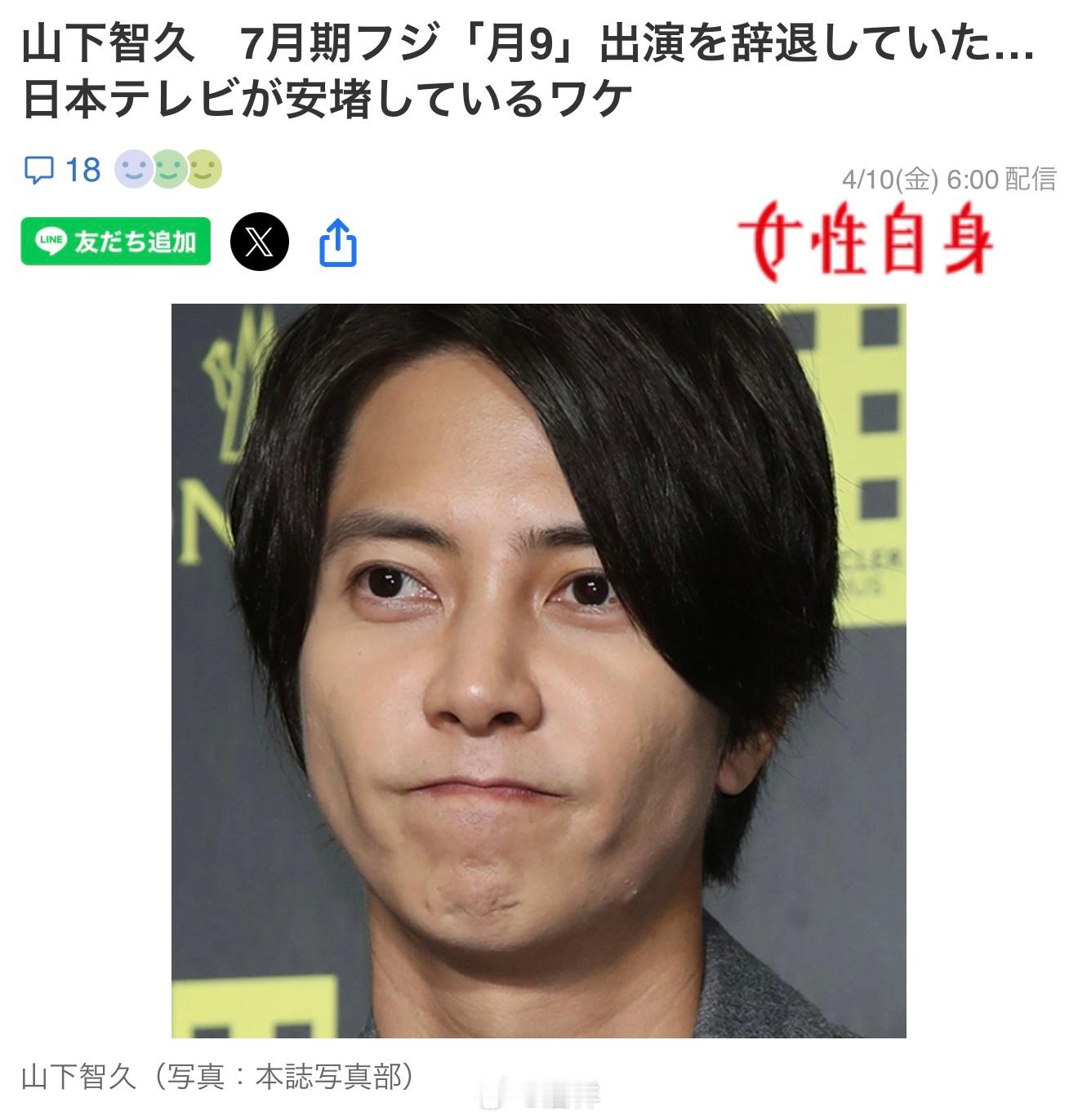 女自:山下智久辞演富士台7月期「月9」连续剧…日本电视台为何松了口气