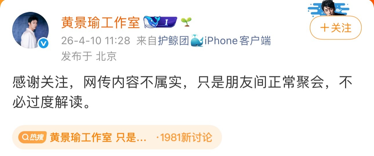 黄景瑜工作室和王玉雯工作室都辟谣了恋情曝黄景瑜王玉雯恋情