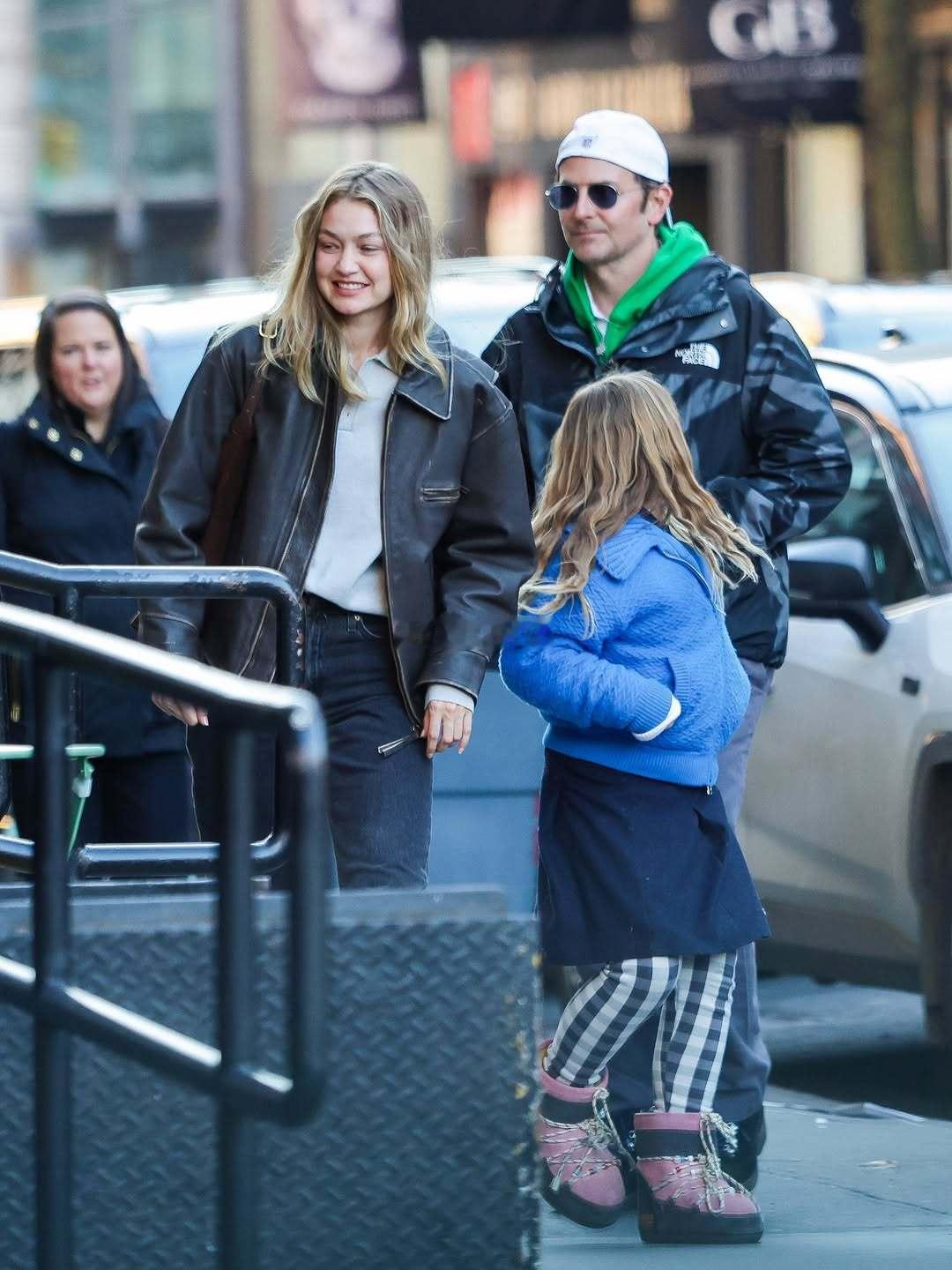 Gigi Hadid和Bradley Cooper被拍到在纽约带着Cooper和Irina Shayk的女儿Lea一起👇