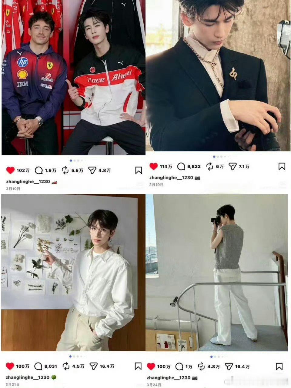 张凌赫个人第5条ins百万赞,发布仅20个小时点赞破100万!《逐玉》火到海外,
