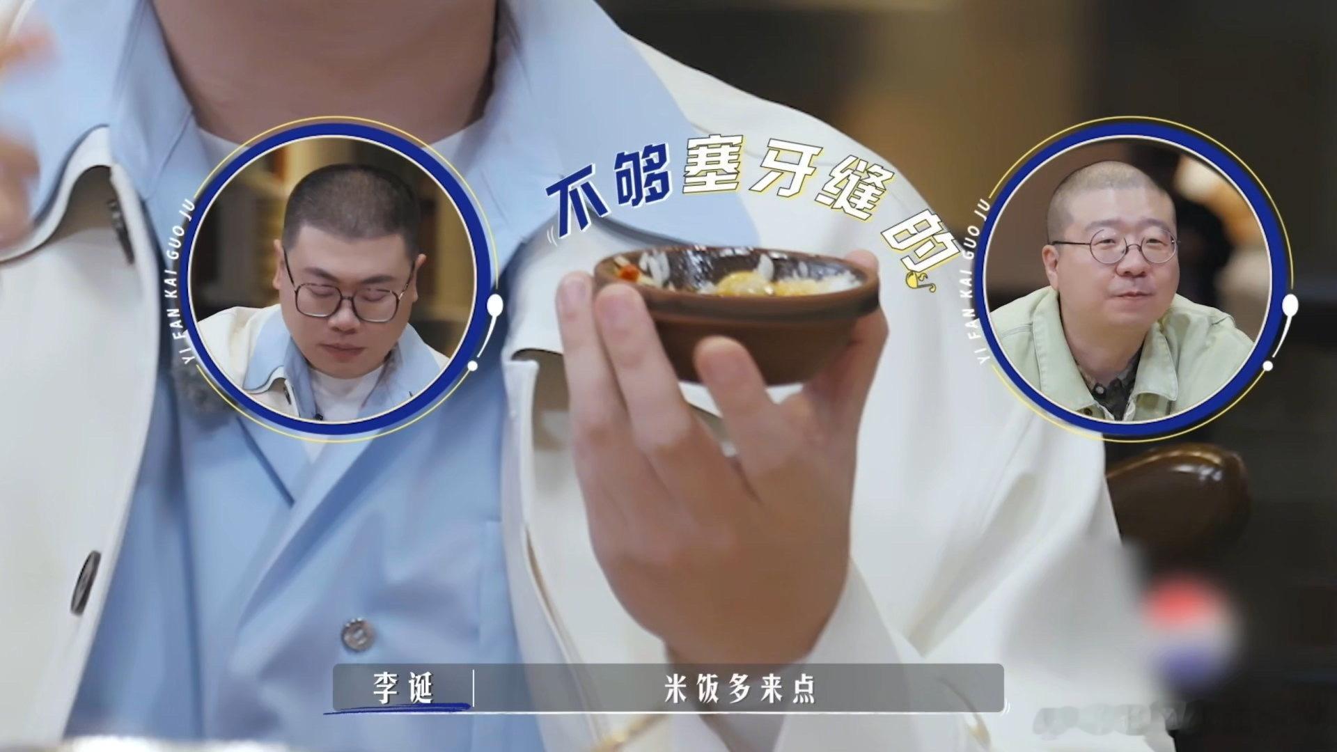 李诞说吕严雨露均沾一饭刚开锅就光盘一饭开锅局 刚坐下吕严的眼睛就跟扫雷达似的盯上满桌菜,红烧肉刚塞嘴里,筷子已经伸向旁边的清炒时蔬,嘴里还嘟囔着“每道菜都不能被冷落”,活脱脱干饭界的端水大师。