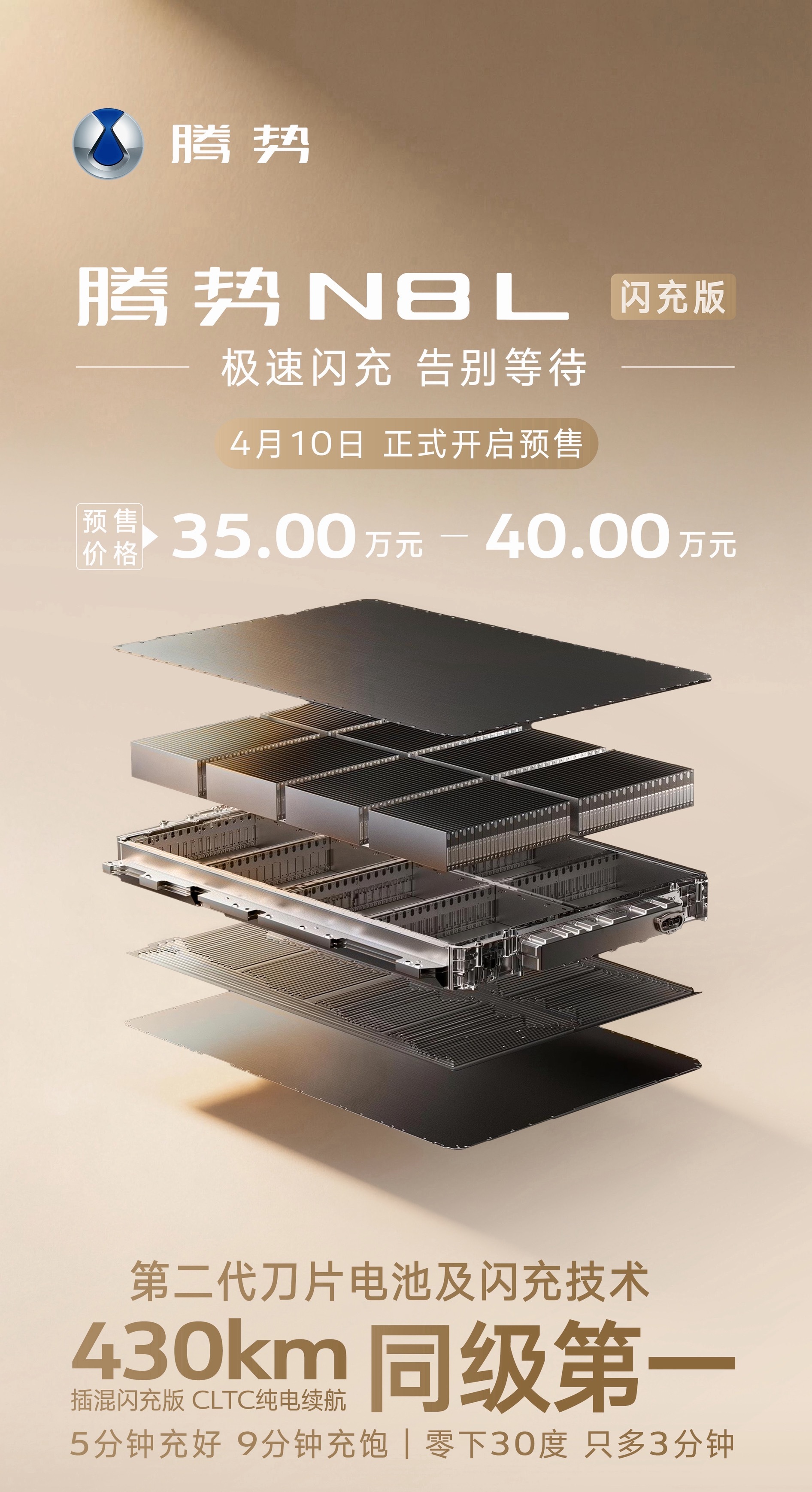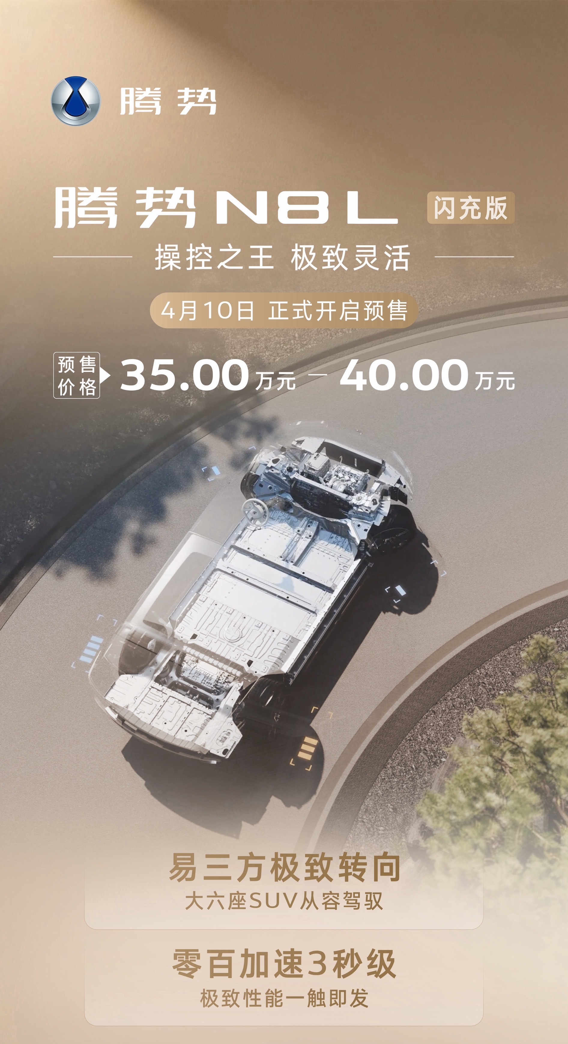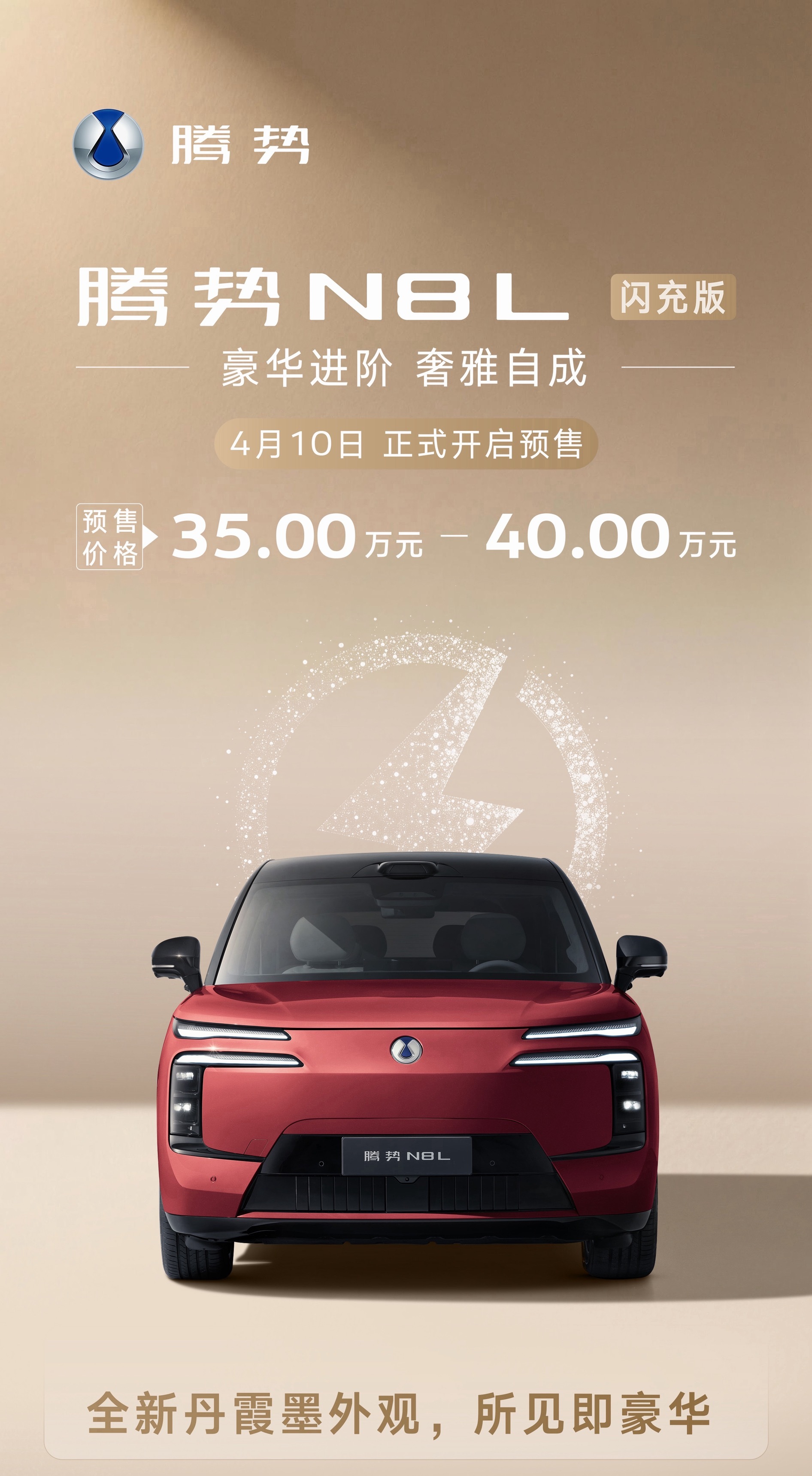 就系甘简单!说来就说!腾势N8L闪充版预售35-40万,插混闪充版纯电430km同级第一,续航之王;5分钟充好,9分钟充饱。首搭AI座舱、天神之眼5.0,易三方极致安全(210km/h避让不侧翻),零甲醛+防晕车,丹霞墨外观。续航之王,就连插混闪充版纯电续航都有430公里,而且插混超级好开啊!大v聊车