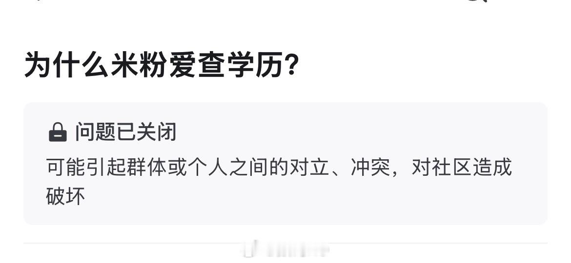 昨天看到一个话题,为啥米粉喜欢查学历,今天一看这个话题被关了,可能有人破防了吧!