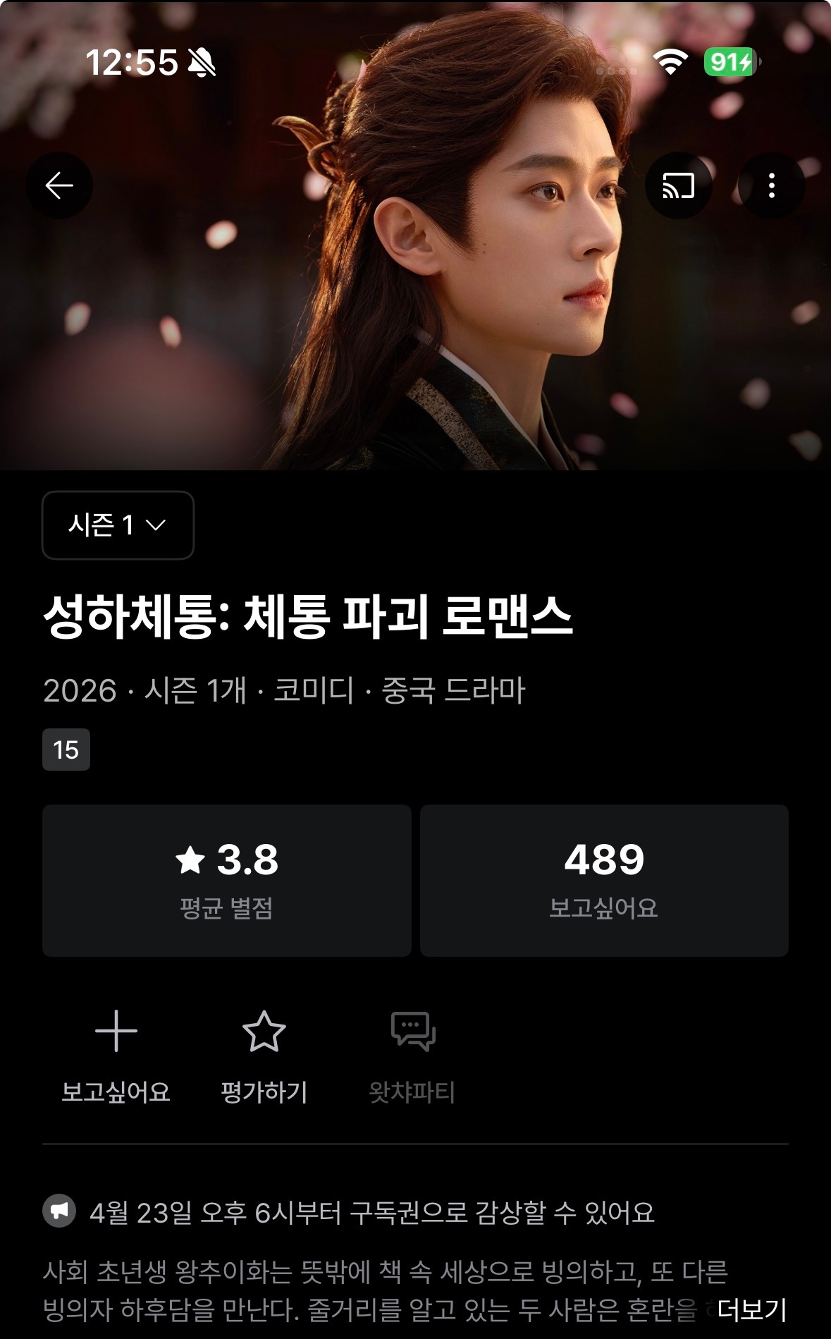 【韩国资讯:成何体统韩国定档成何体统韩国播出 】王楚然、丞磊、唐晓天、胡意旋领衔主演,马苏、崔奕、樊少皇特邀出演,尤靖茹、张瑞涵、隋咏良、张皓然友情出演的32集古装爱情喜剧《剧集成何体统 /성하제통》于04月23日韩国OTT WATCHA播出。