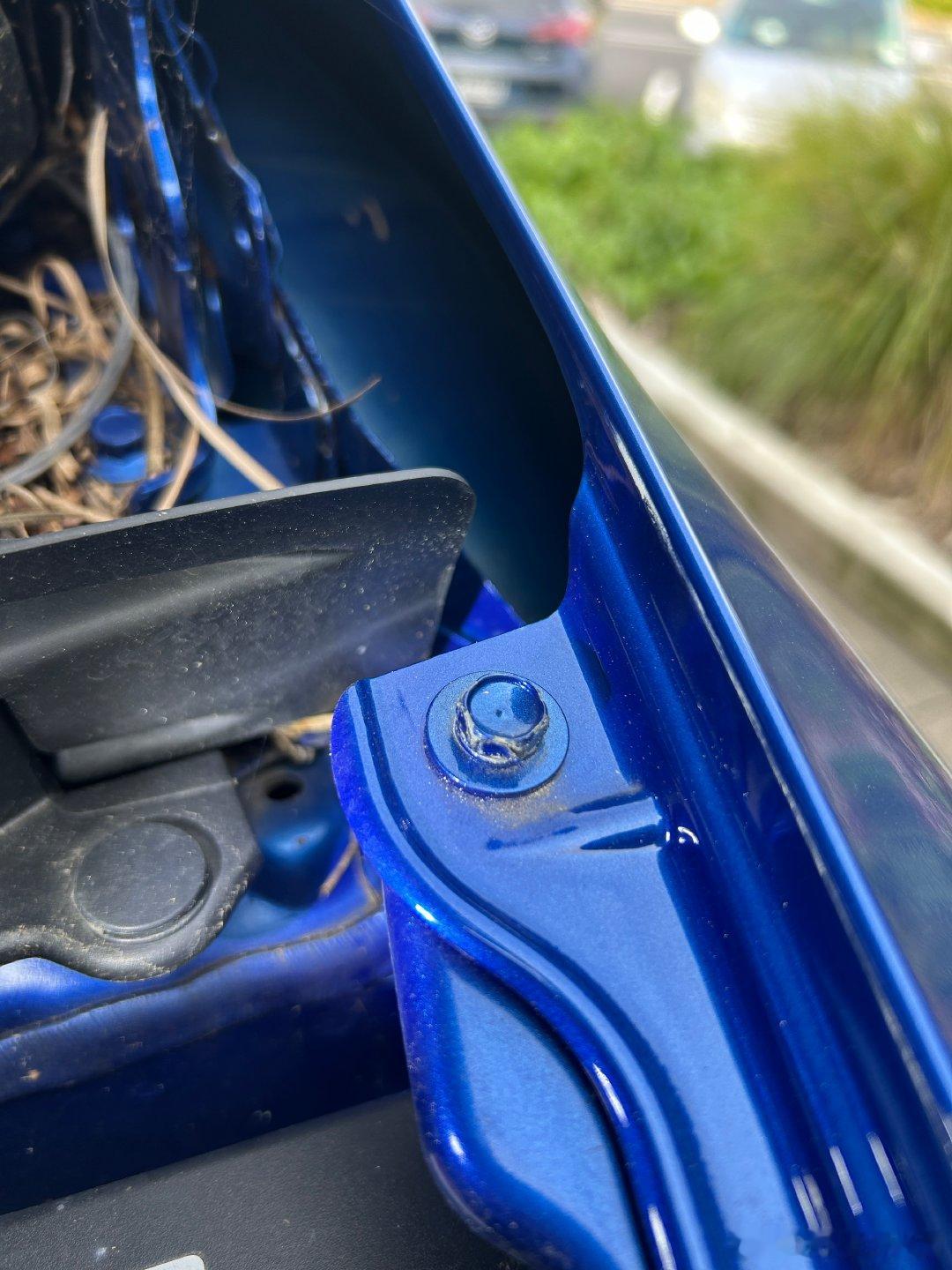 左前门喷漆,这不是重点。重点是左前翼子板,明明是原车数值,但漆面有明显的橘皮纹。结合翼子板所有固定螺丝都有拆卸、并且翼子板内侧颜色为黑色的事实,可以判定这张翼子板有更换;