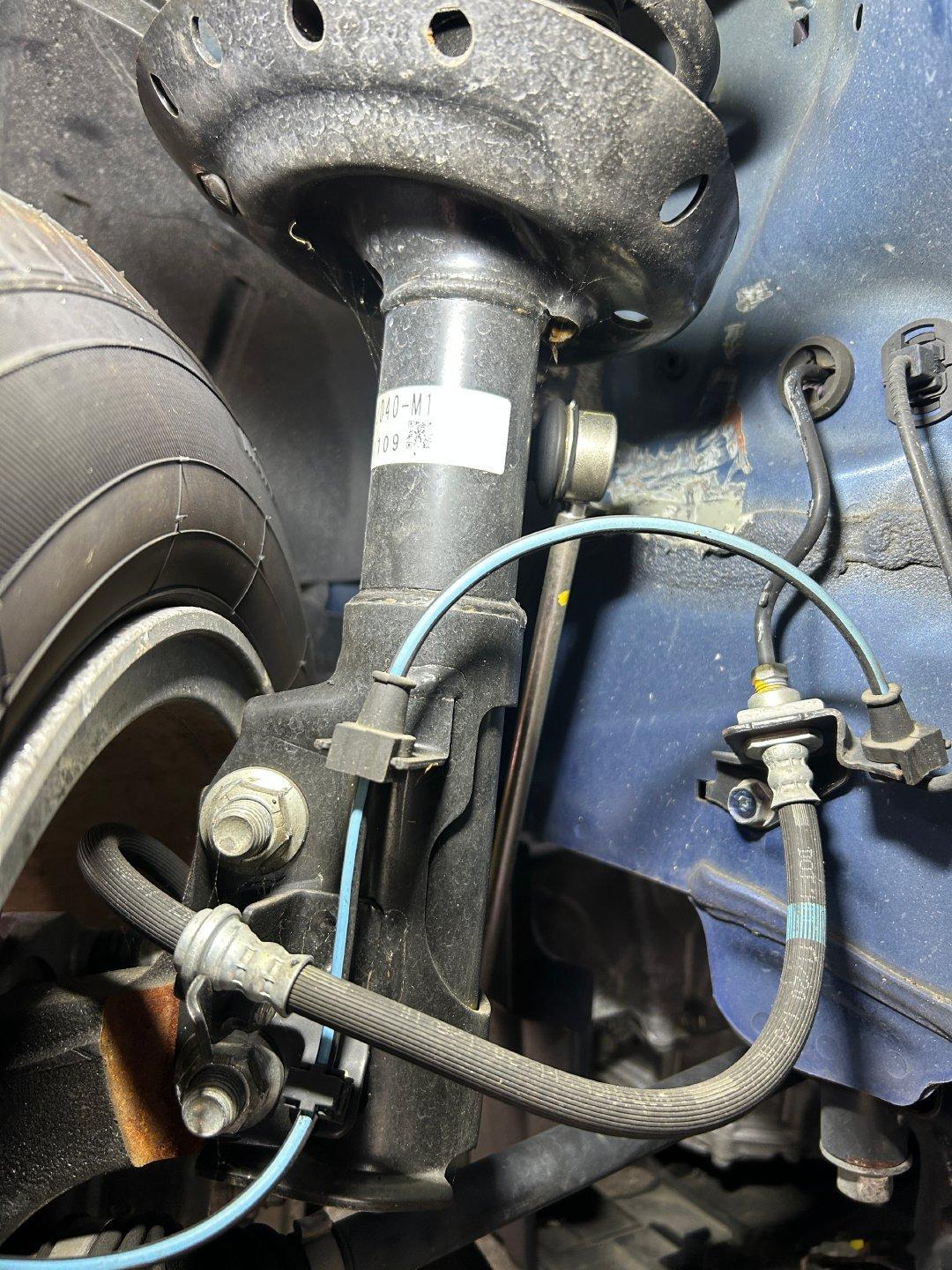 结论已经显而易见了,估摸着也就是 2022 年的时候,这车左前方出过一次事故,干碎了挡风玻璃,干爆了左前胎和减震器。