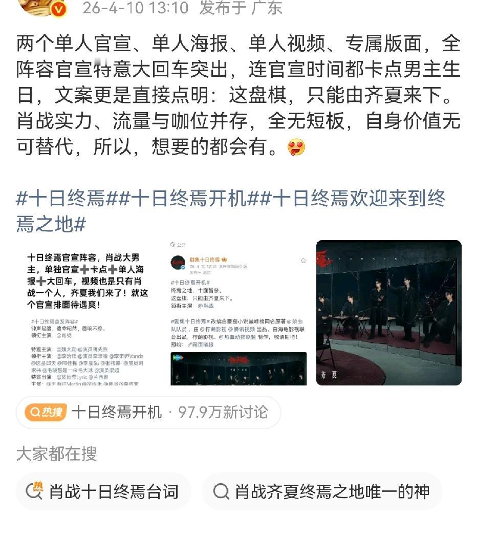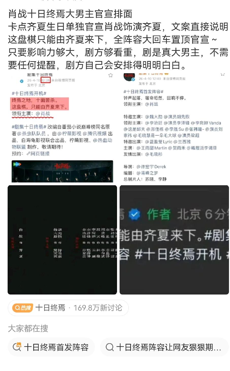 十日终焉,巨男主肖战齐夏,官宣即上世趋,这样的排面之前就有,肖战实力专属[呲牙]