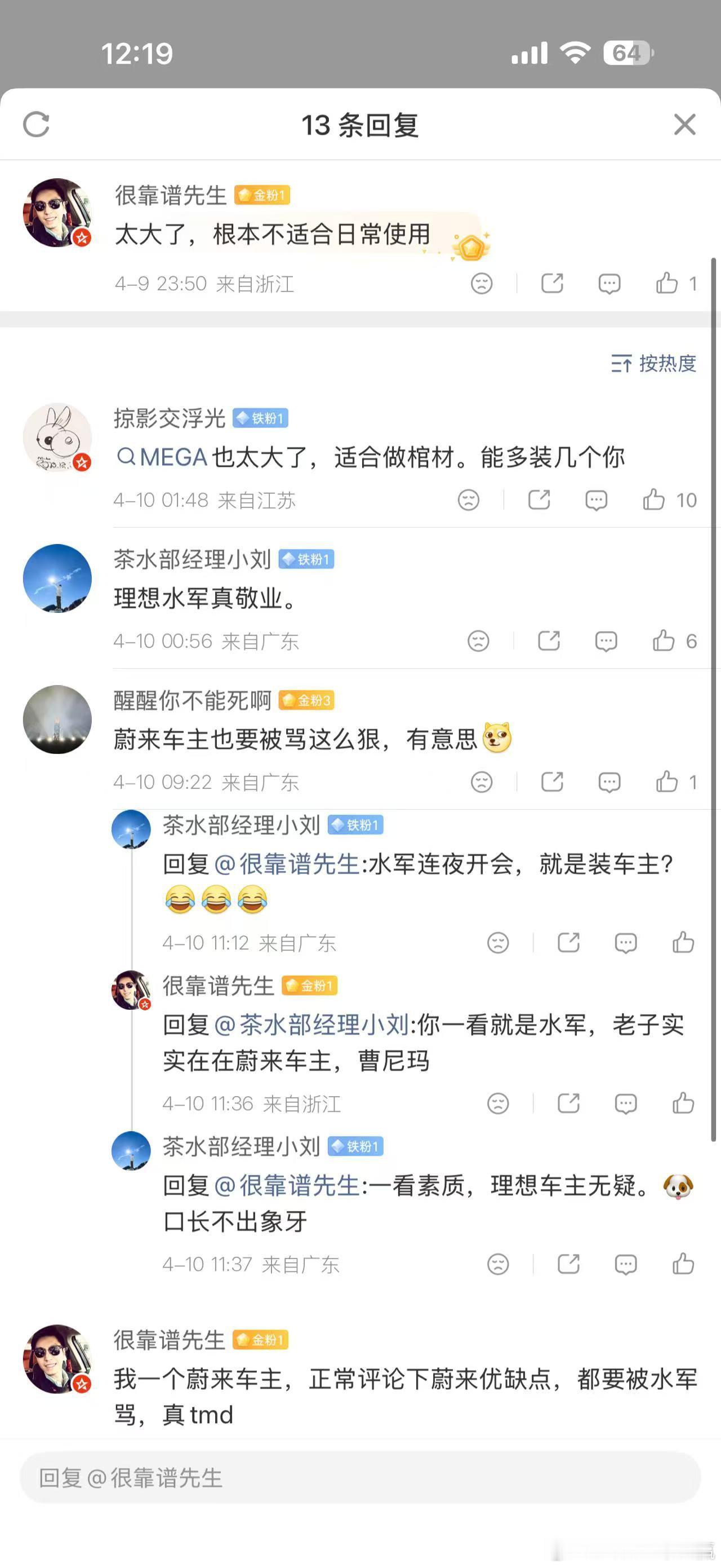 这个茶水部小刘也是一个顶级极端粉自己车主探讨下就怎么骂…现在所有博主被“教育”后都很客气了也就这帮极端粉每天到处串到处挑拨