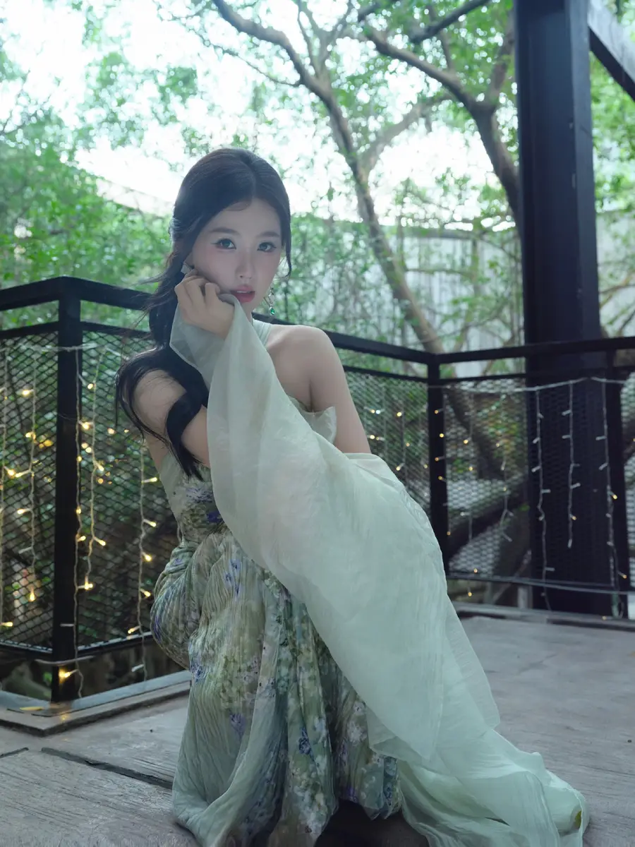 虞书欣一袭绿裙清新淡雅 新中式发型清冷感十足