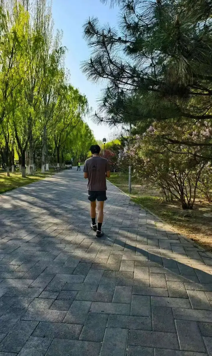李现穿灰T黑短裤户外慢跑 身形挺拔状态清爽