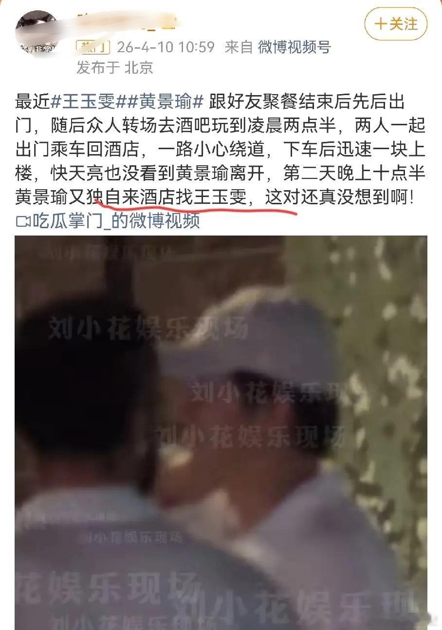黄景瑜到底有什么魅力啊被拍到和王玉雯一起回酒店疑似恋情,第二天又来找。王玉雯上升期小花,刚刚靠颜值小出圈了一下,黄景瑜再结婚就是二婚了。随后王玉雯工作室否认了这段感情,就是朋友聚餐,请勿过度解读。你们怎么看?