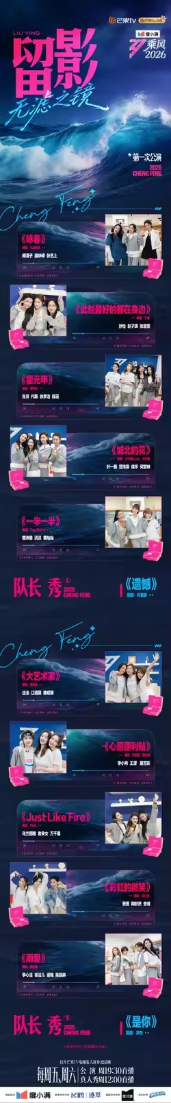 乘风2026一公歌单乘风一公歌单来了,今天直播期待住了!相信姐姐们已经拍练的很好