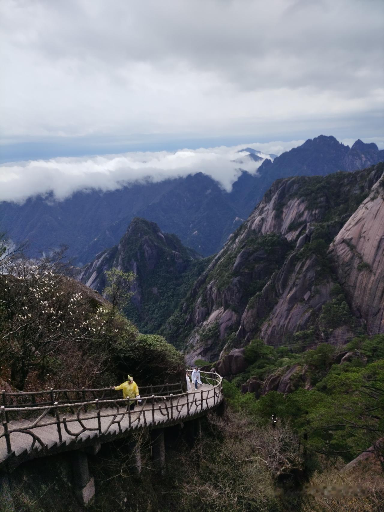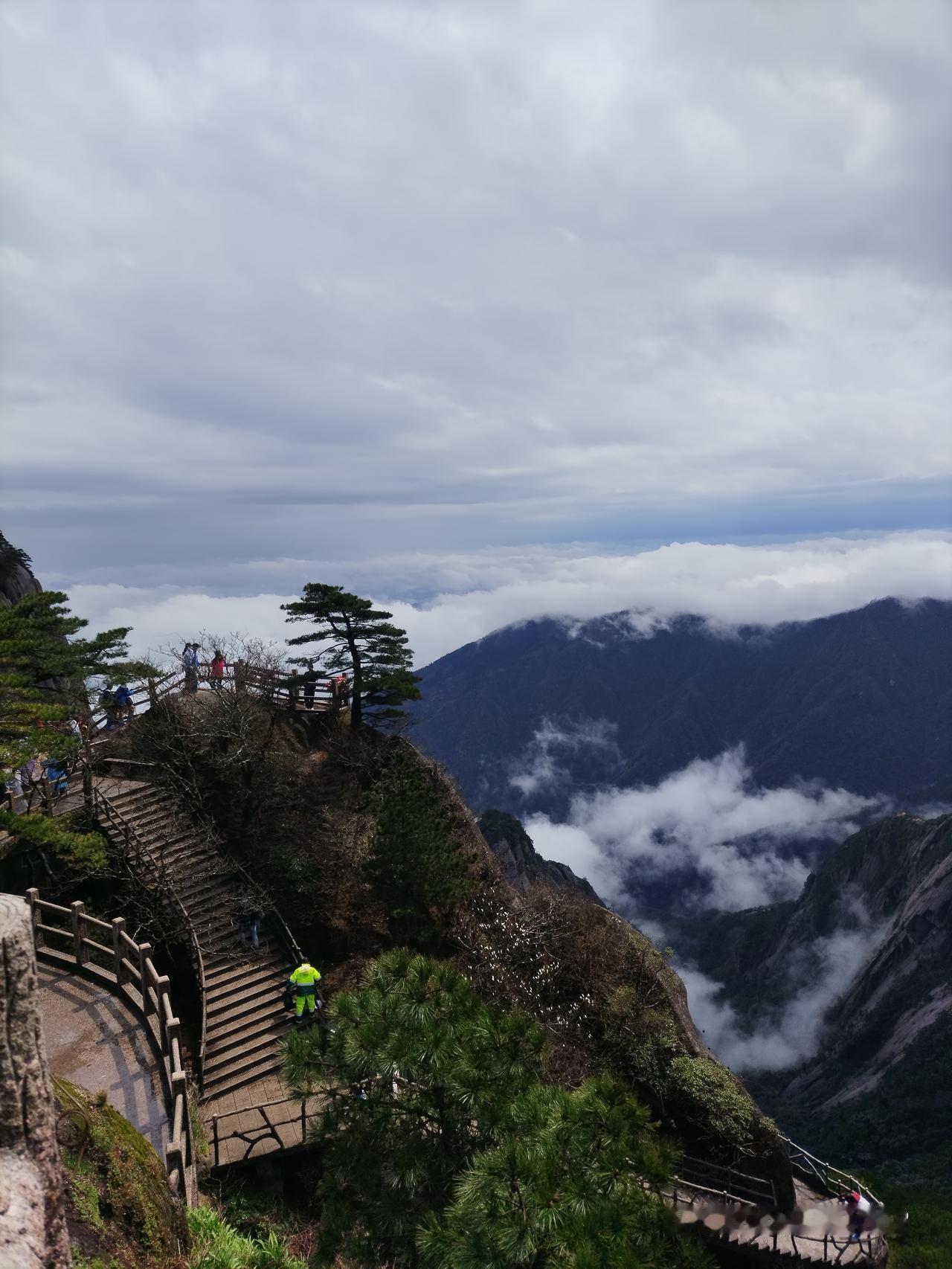 四月份去黄山,不是多云就是下雨,但是,下小雨天数很多。我活了45岁,第一次爬黄山