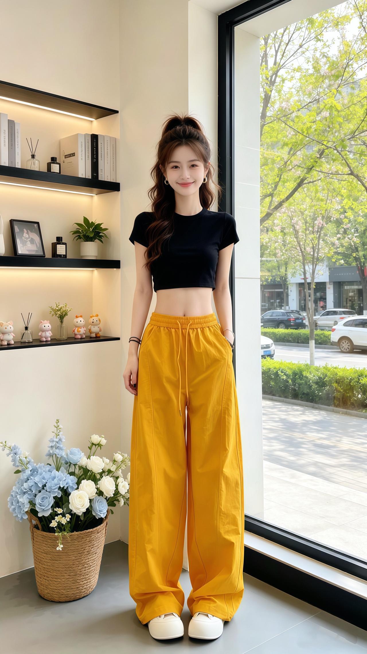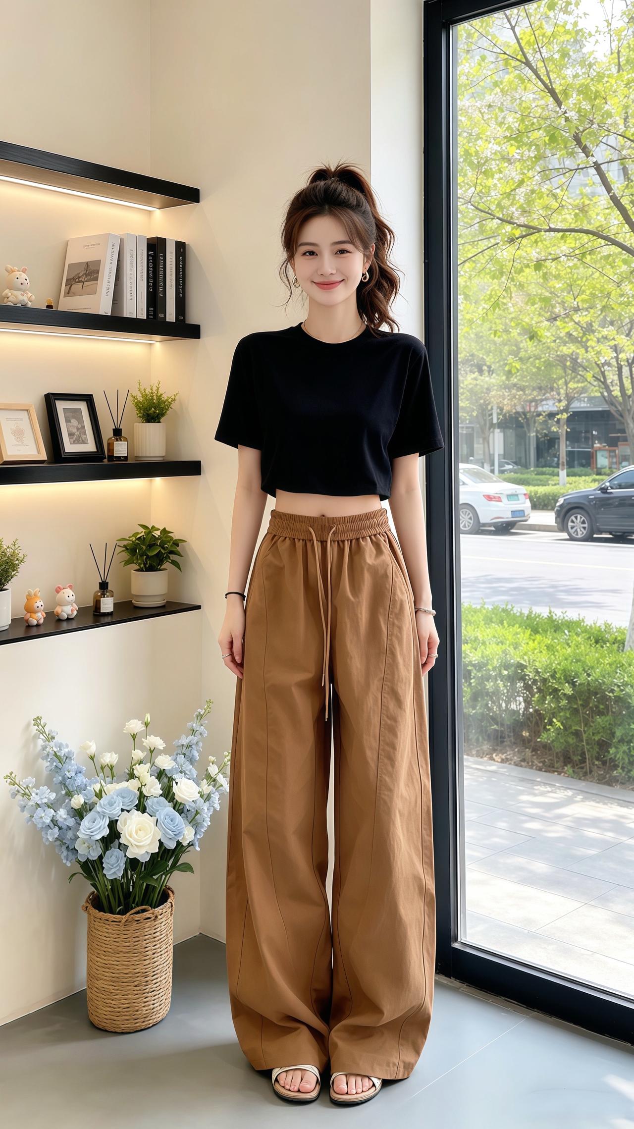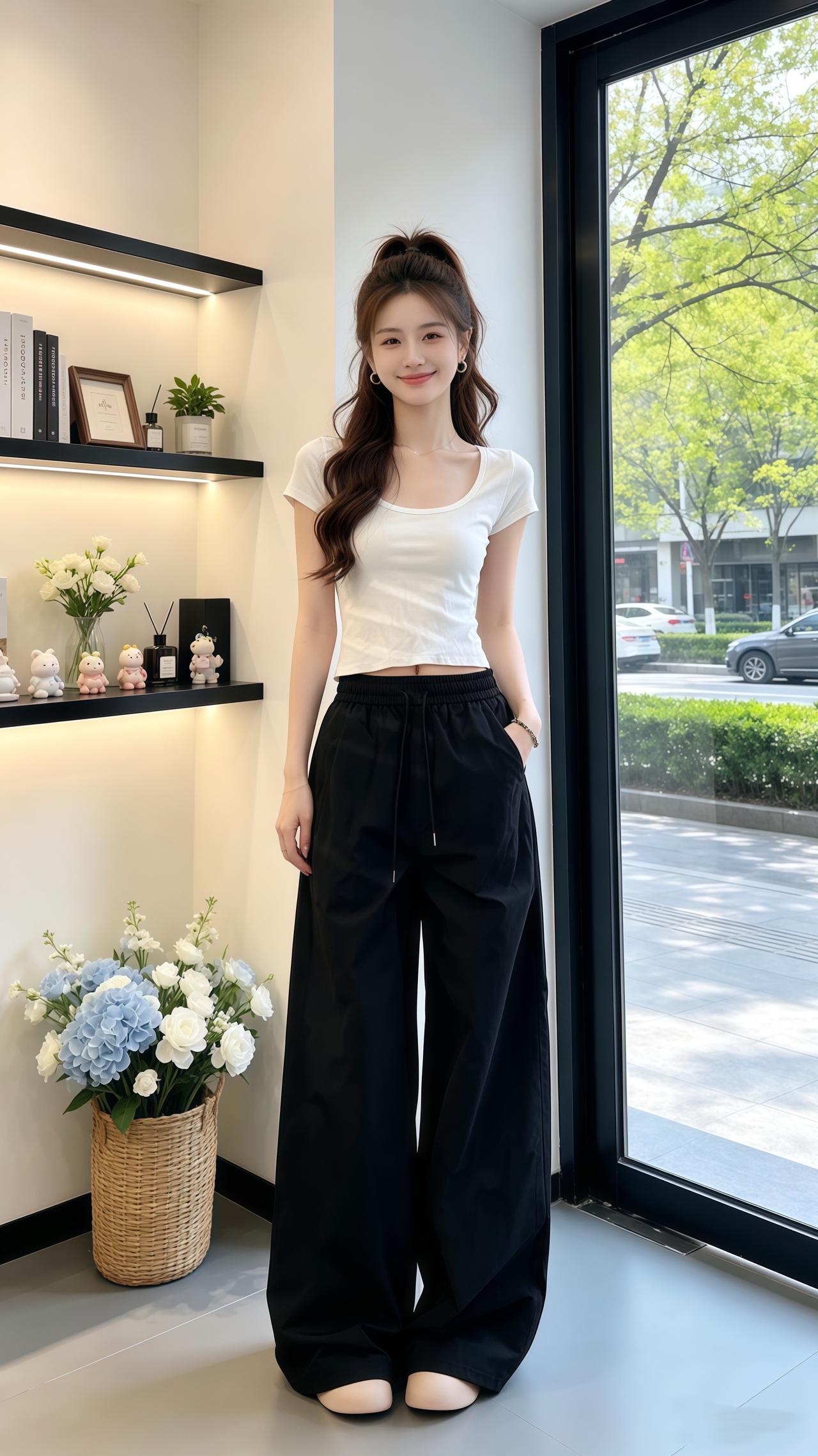 遮肉显瘦阔腿裤 休闲百搭裤子 高腰显瘦