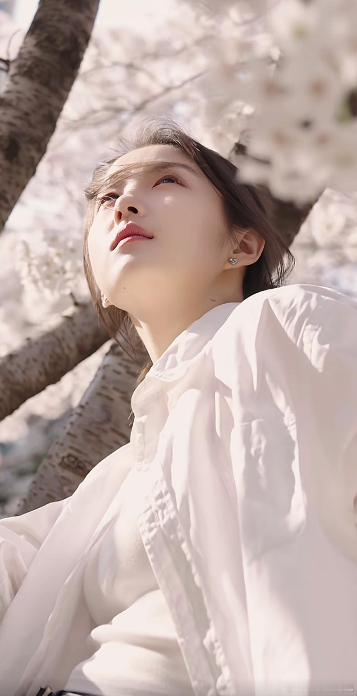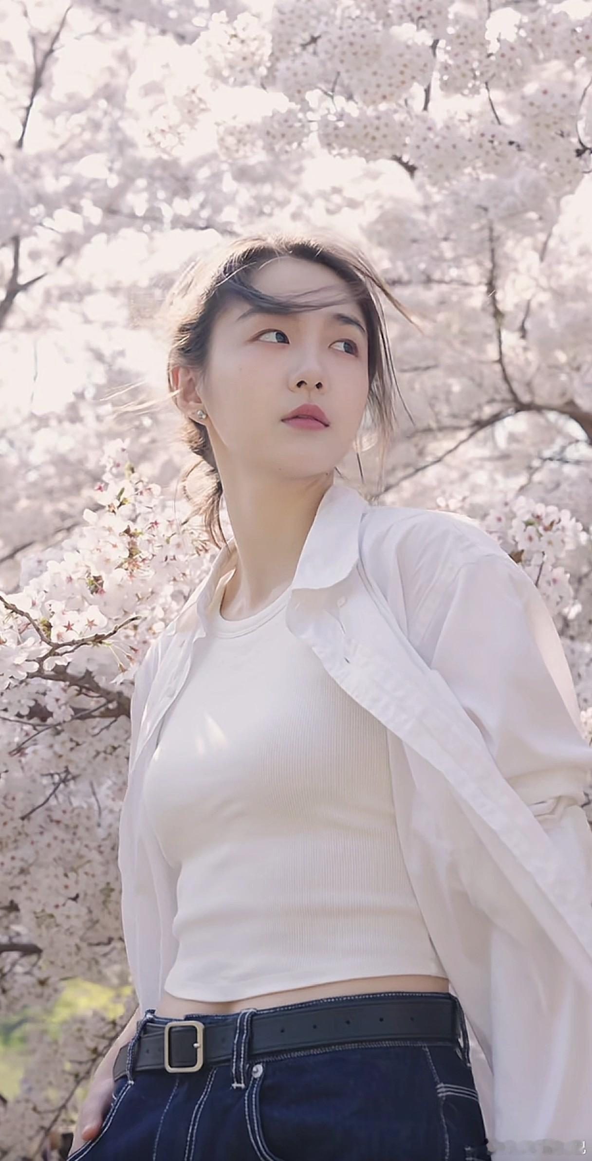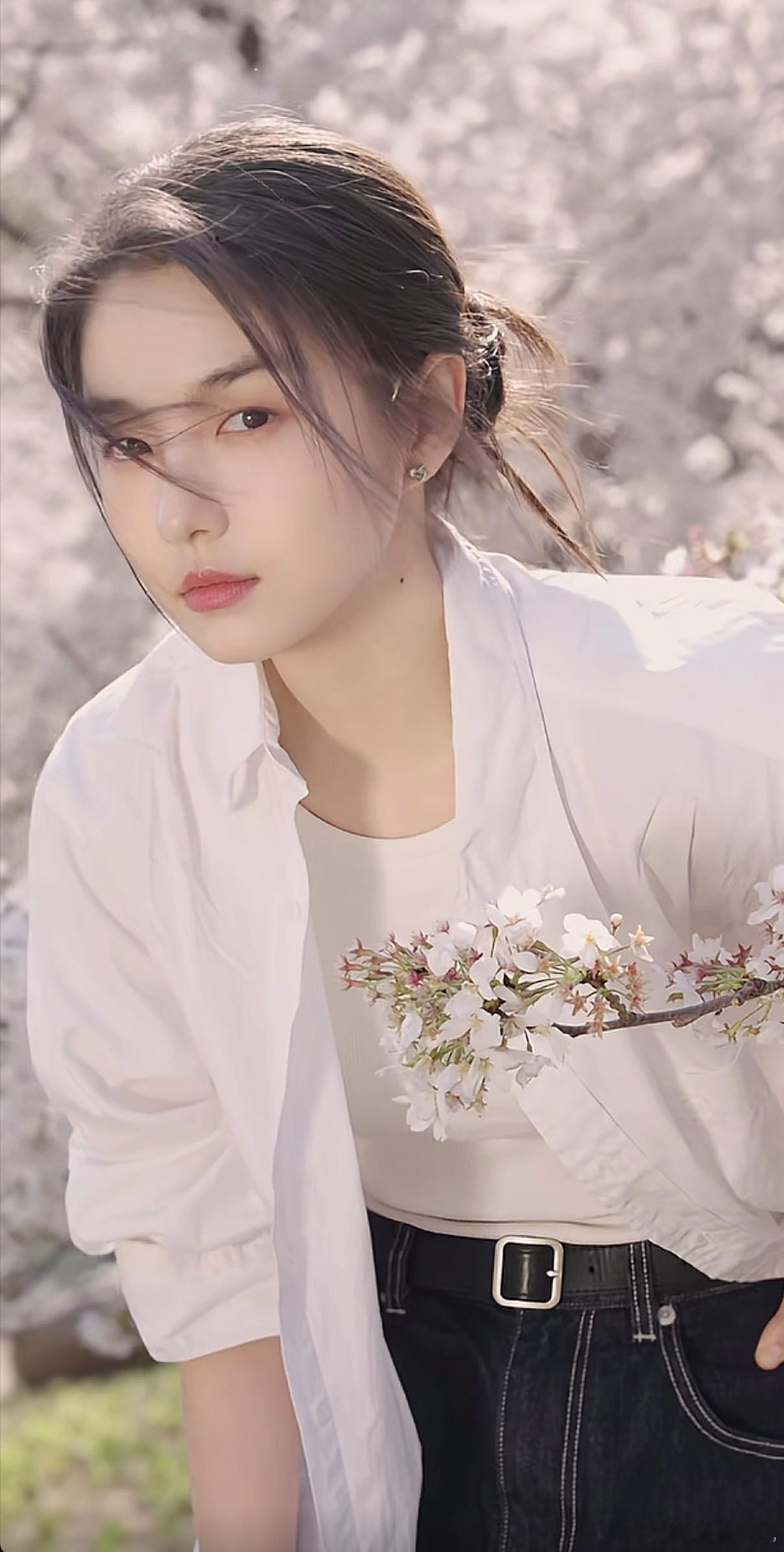 这位小姐姐在花丛中穿着黑色西装外套搭配白衬衫职业装,好有气质!