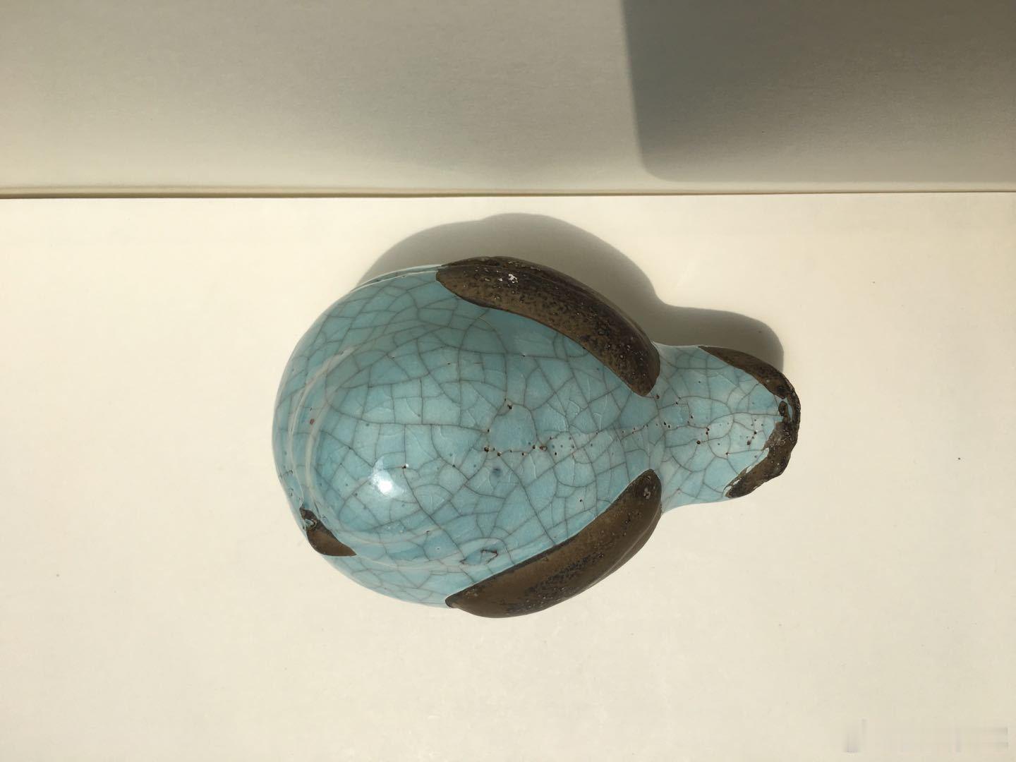 每周鉴赏收藏精品之北宋官窑天青釉塑鸟 北宋天青釉瓷器都会有很高的经济价值,不管是汝窑的还是官窑的。因此,我们给本件瓷塑鸟定的出手价是600W。很低了。 因为在汝官不分的状态下,本件北宋天青釉塑鸟,在自媒体环境中,亦汝亦官,都有确定的特征和理由: 从汝窑的角度看,首先是蟹爪纹明显且经典,就是有比较密集,成排成行的细小的棕眼。像螃蟹在沙滩上行走留下的排行成列的状态。按照明代藏家的观点,汝窑有蟹爪纹的为真。现在网上把蟹爪纹说成开片,真是侮辱了古人的认知力和文言文的精准度。 其次是开片,这种比较小的,比较均匀的斜向为主的开片,也是汝窑天青釉瓷器常有的一种,虽不能说是特点,但也不冲突。 至于胎土颜色和釉面光亮,现在也有人从汝州窑口和烧造温度方面进行解释。所以,把它往汝窑瓷器上说,也不会胆怯。 当然我们还是认为是北宋官窑瓷器。 总之,它是一个到代的老瓷器。釉面特征和胎土状态非常明了,没有任何仿制假冒的迹象。这就是最根本的优势了。 加之,它是一个手把和摆放的玩件,高路份的东西。价格一定不菲。如果是国外大拍,八位数以上了吧?