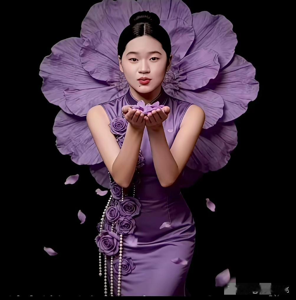 一知名杂志邀请全红婵拍摄的海报,都是花朵的造型。