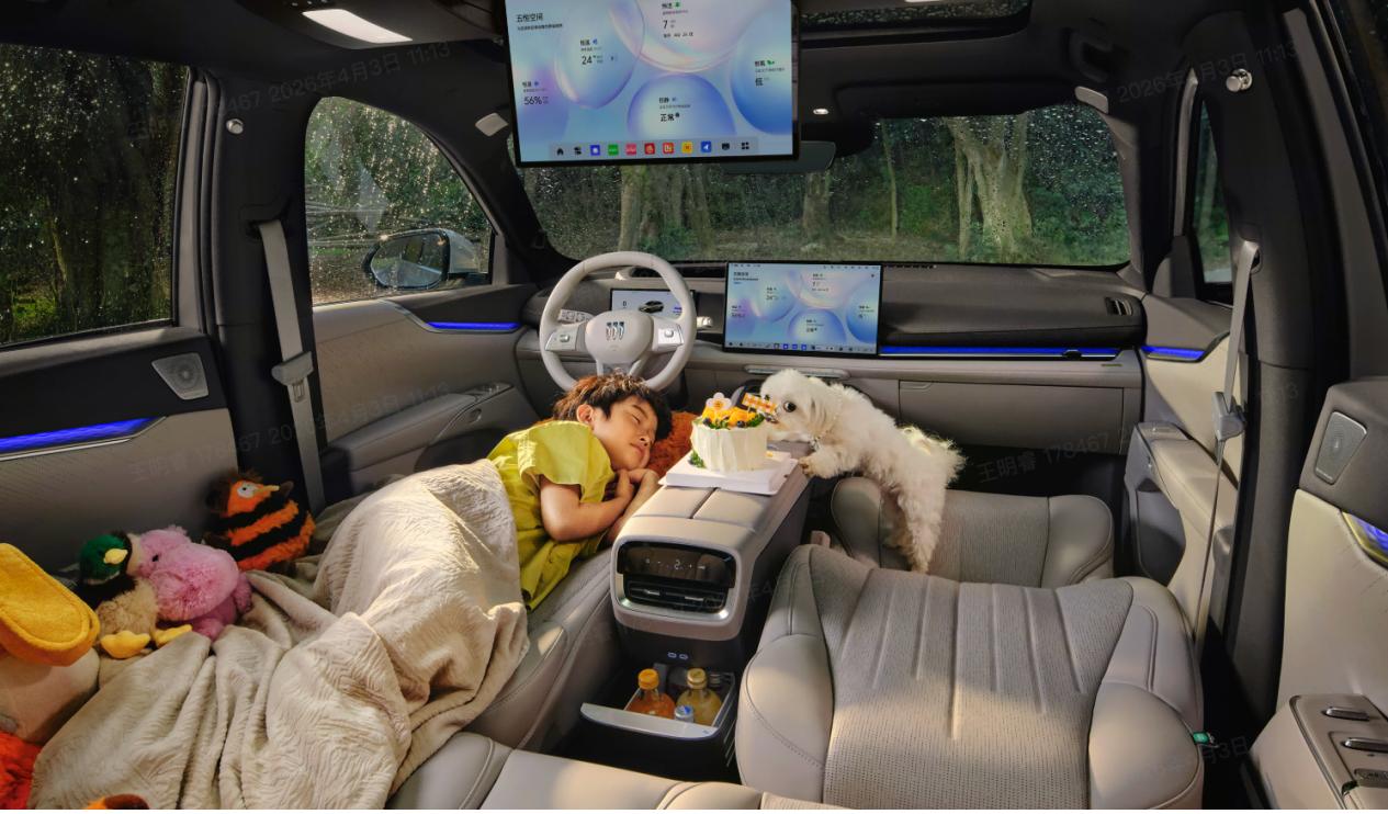3、亮点配置有最新一代豆包大模型 、15.6英寸二排影院屏、银离子保鲜冷暖箱、二排多功能桌板 、7.1.4 杜比全景声 20 扬声器环绕音响