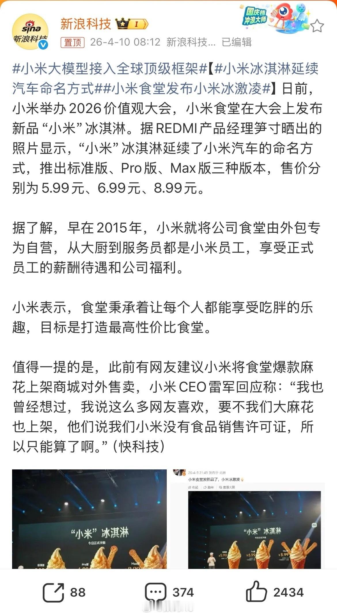 小米食堂发布小米冰激凌小米的流量还是太大了,内部发布了小米冰淇淋都这么大热度,本