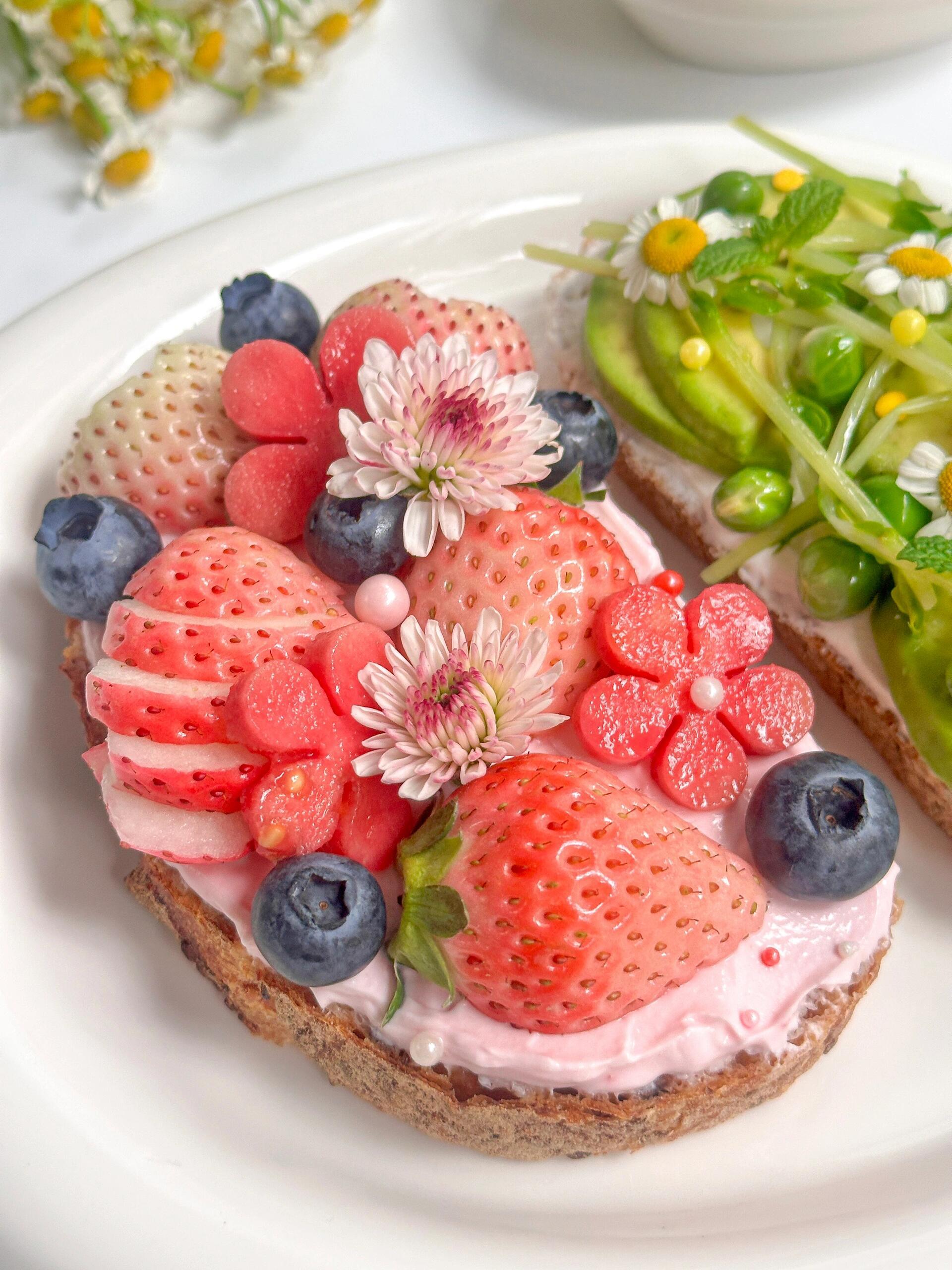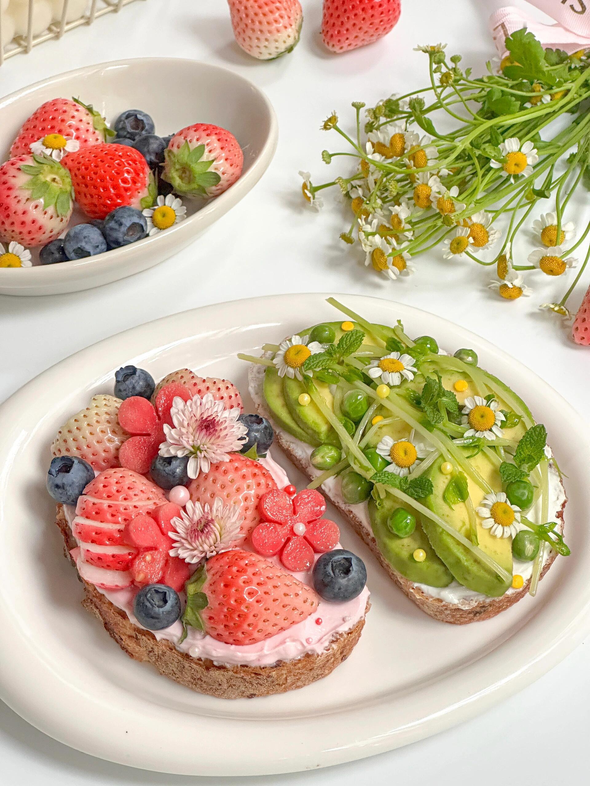 今日份早餐🥣是充满了春天气息的双拼开放式三明治🥪