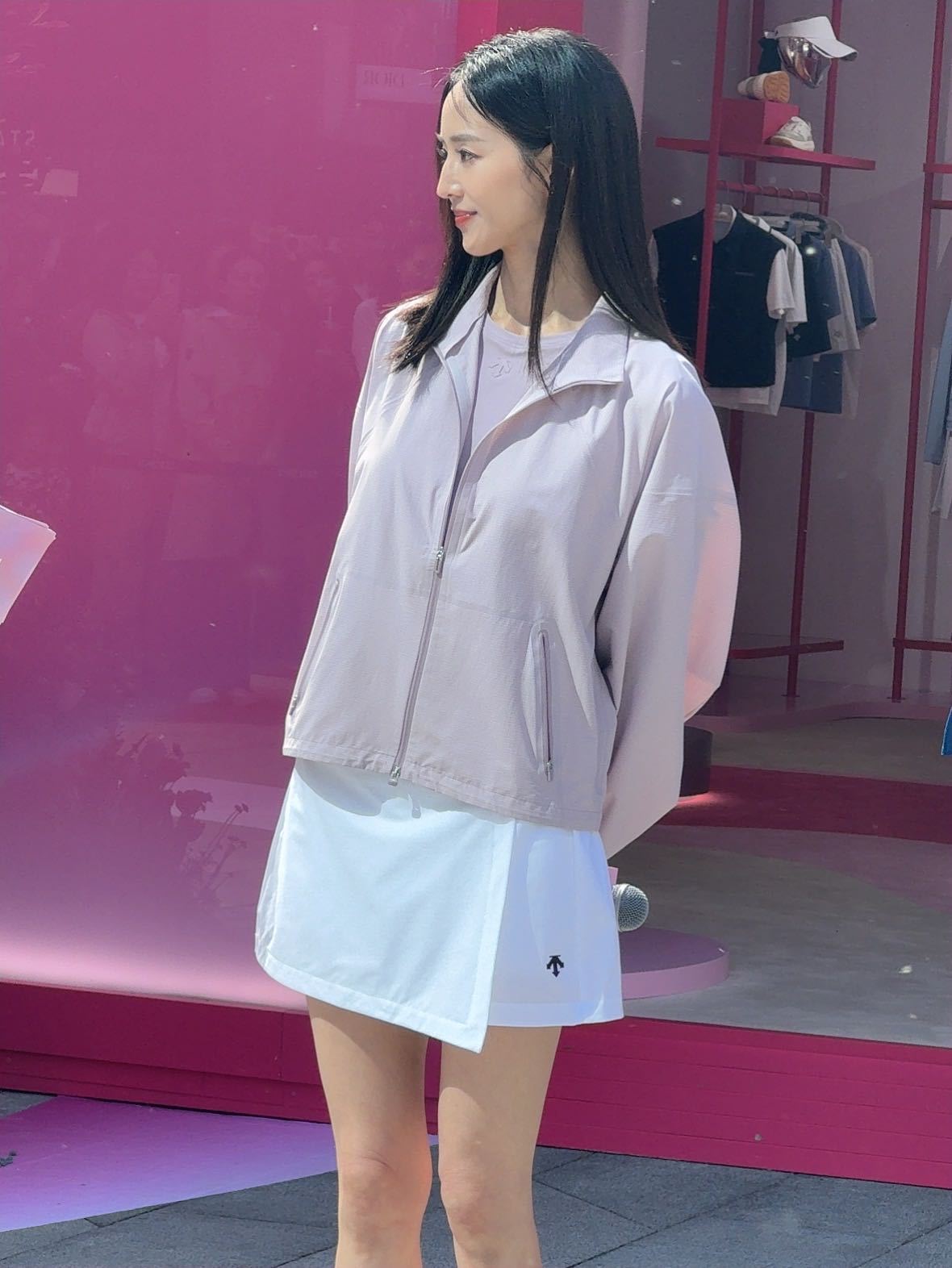 张钧甯穿粉色 今天活动现场生图太能打了!张钧甯一身浅粉穿搭站在阳光下,笑起来温柔