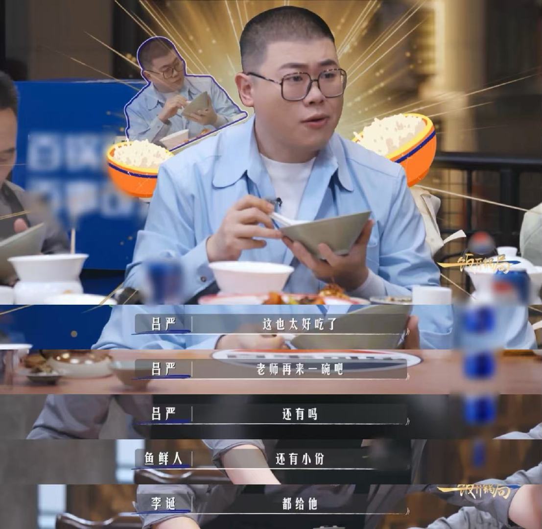 饭碗在吕严手里像是在开玩笑一饭开锅局锅王诞生一饭开锅局别看吕严手里的饭碗看着像闹笑话,食量可一点都不含糊,迷你小碗装超多米饭,反差感直接拉满